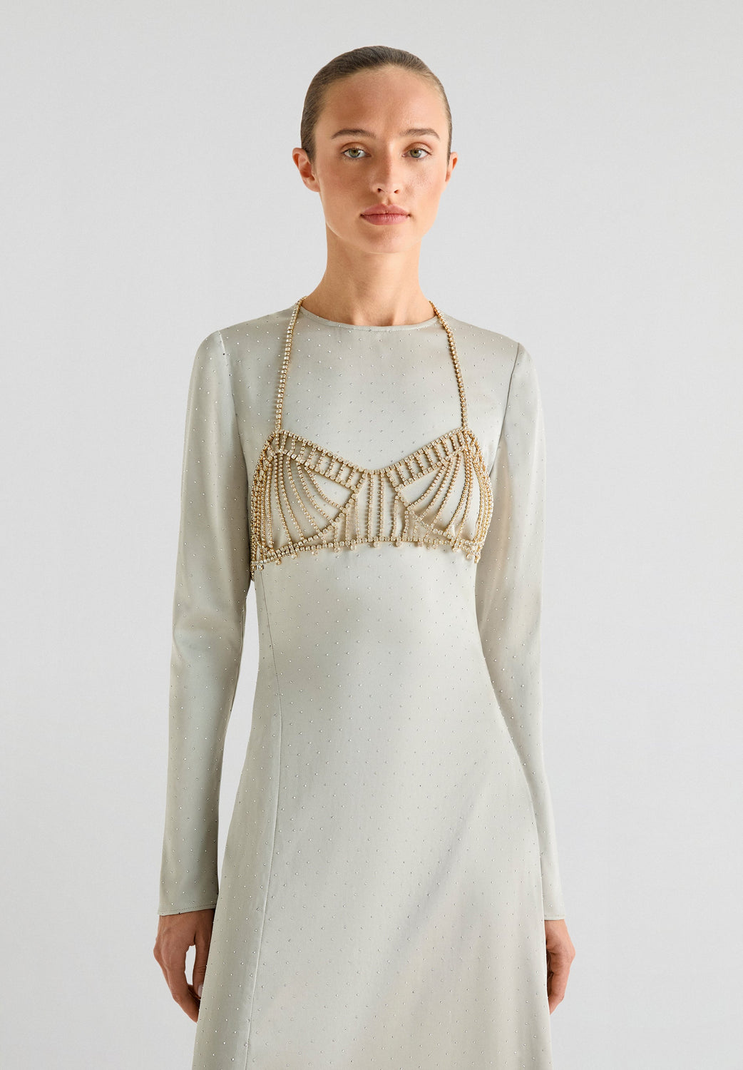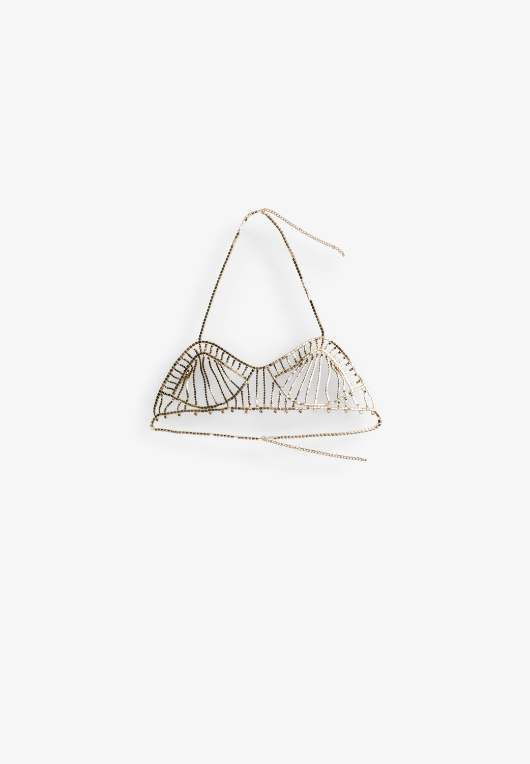 Bralette made with crystals. Fastening at the neck and back with lobster clasp.