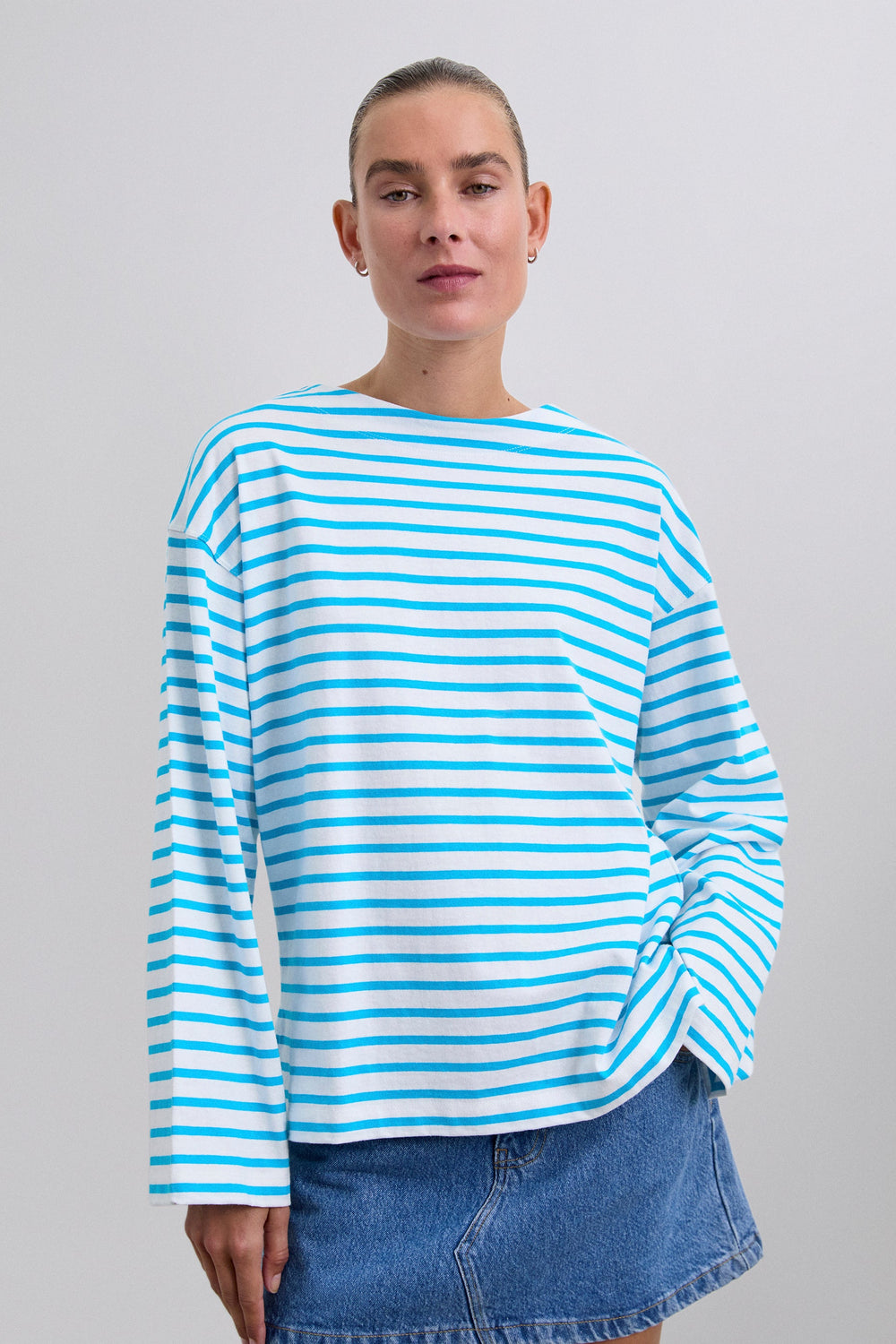 Stripe T-shirt made from 100% cotton. Relaxed fit, round neck and long sleeves. Logo label detail at the back.