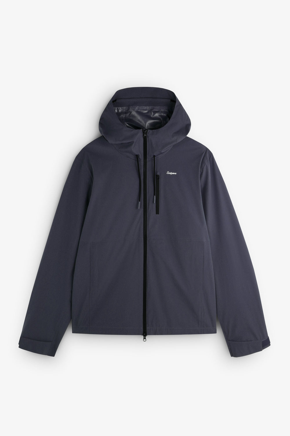 Waterproof jacket featuring an adjustable hood with drawstring. Heat-sealed zip fastening. Long sleeves. Chest pocket with heat-sealed zip and side flap pockets with snap closure. Contrast logo detail on the front and skull motif on the back of the hood.