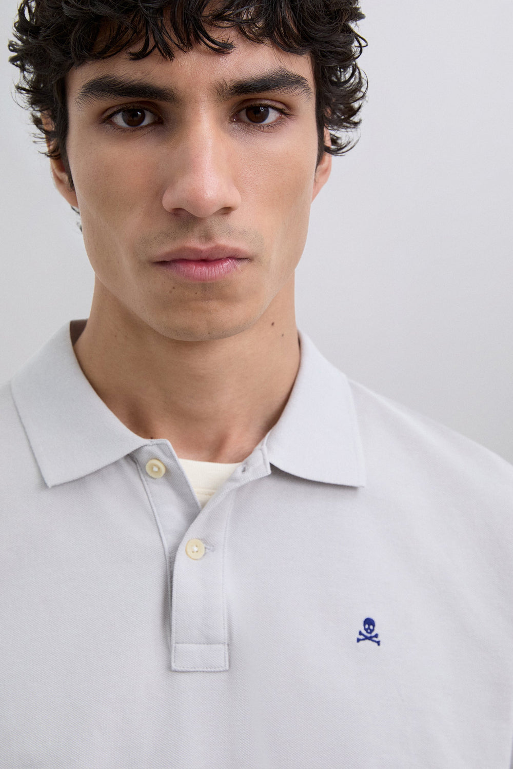 Pique polo shirt made of 100% organic cotton. Short sleeve. Regular fit. Two-button placket. Ribbed collar and cuffs. Contrast embroidered skull on the chest.