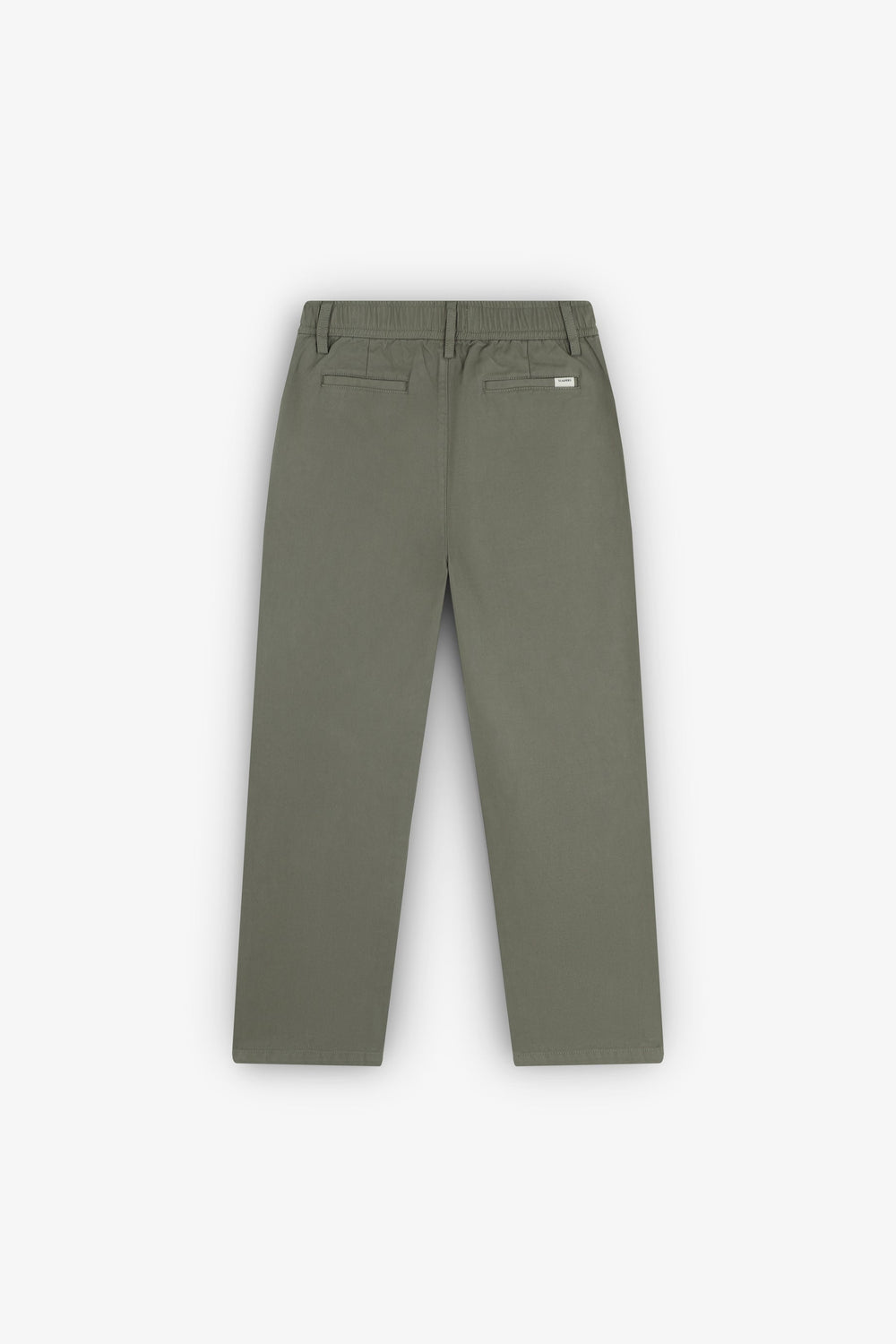 Chino trousers made of 100% BCI cotton. Two front and back pockets. Button fastening and belt loops. Logo label detail on the pocket.