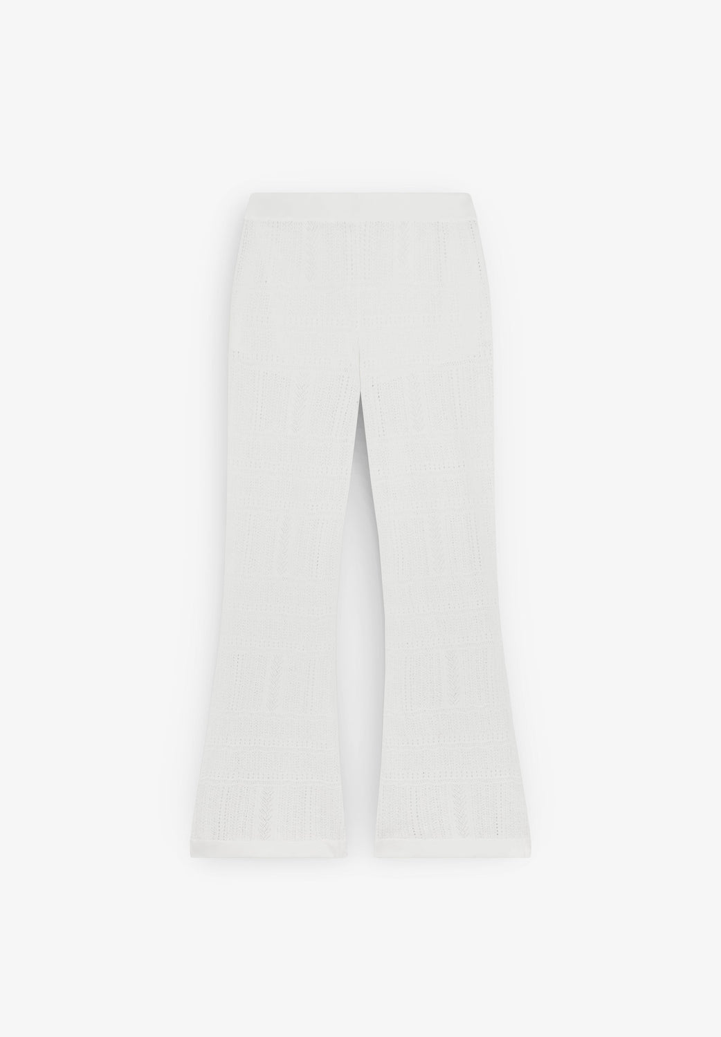 Pointelle trousers. Flared. Lined. Ribbed trim.