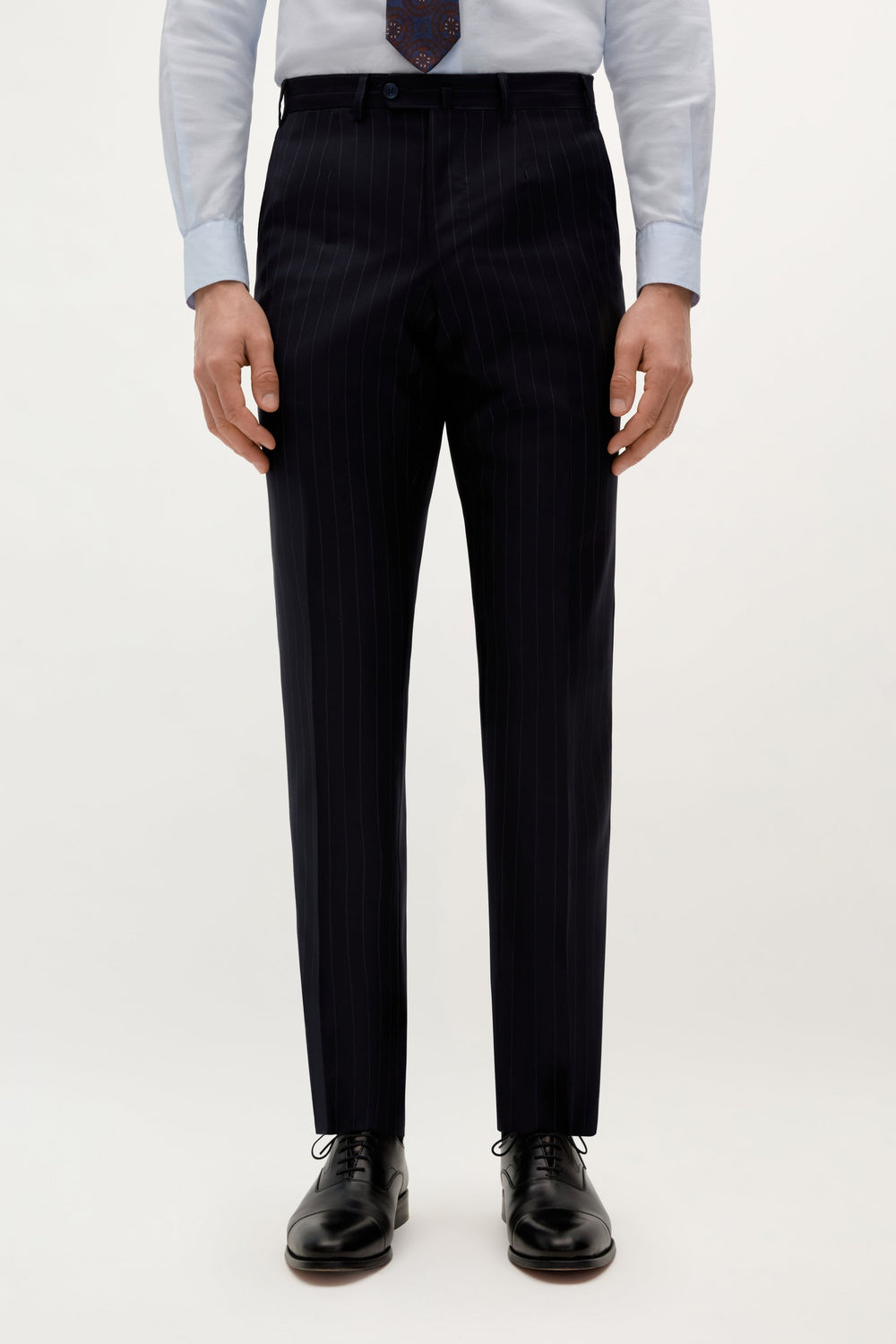 Trousers made of 100% Italian wool. Fastens with concealed zip, hook-and-eye fastening and buttoned placket. Two side pockets. Buttoned buttonhole pockets at the back. Made in Portugal.