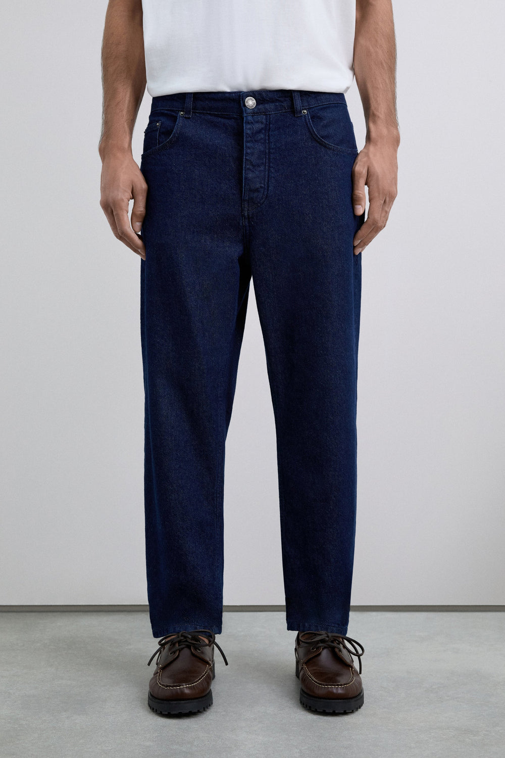 Jeans made of a cotton blend. Cropped fit, top button and zip fly fastening and side and back pockets. Belt loops at the waist.