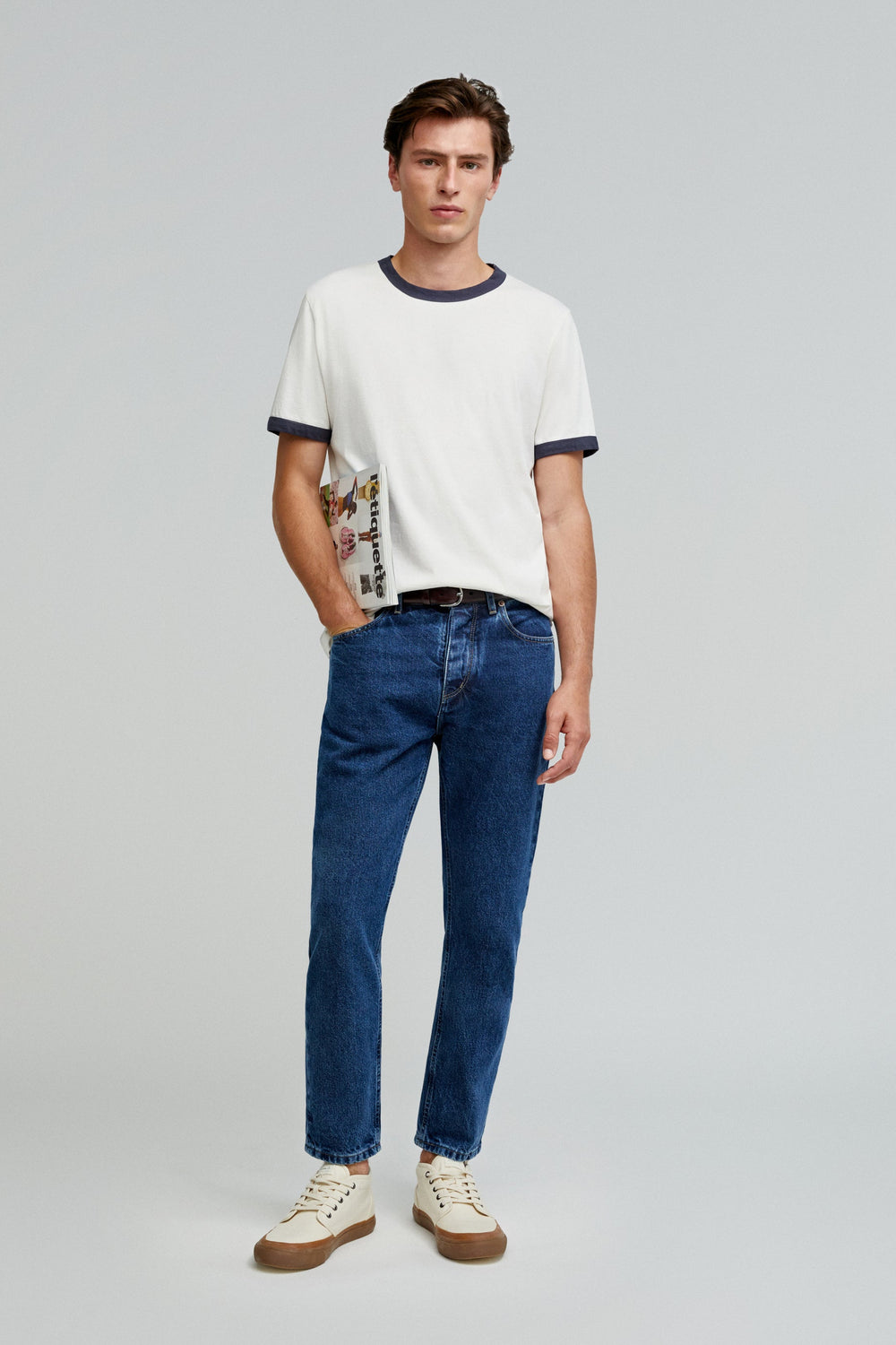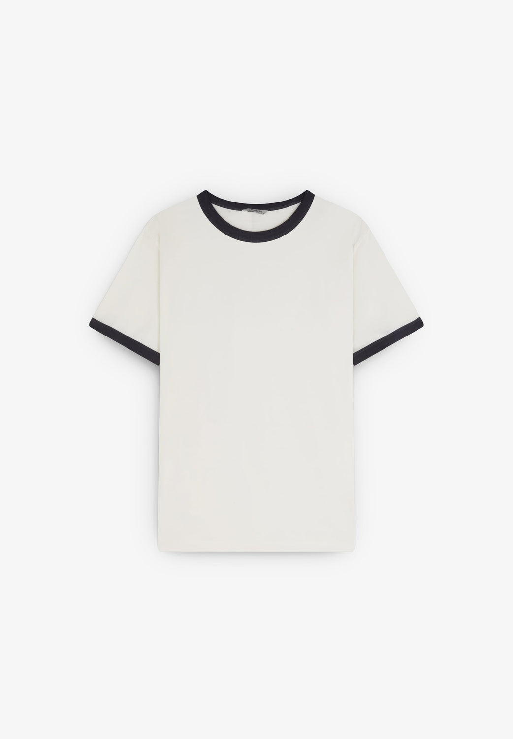 T-shirt made of 100% BCI cotton with contrast hems. Regular fit, round neck and short sleeves.