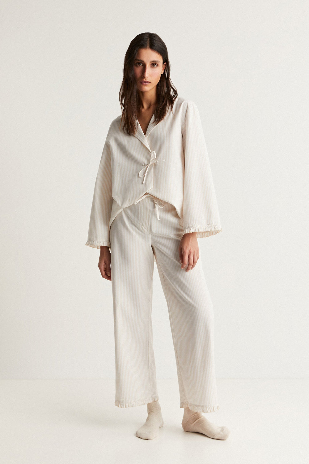STRIPED PYJAMAS WITH TIE DETAIL