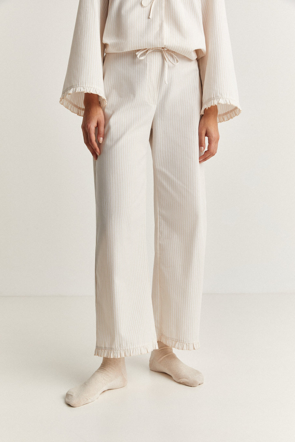 • Bottoms with adjustable elasticated waist. Ruffle detail at the hem