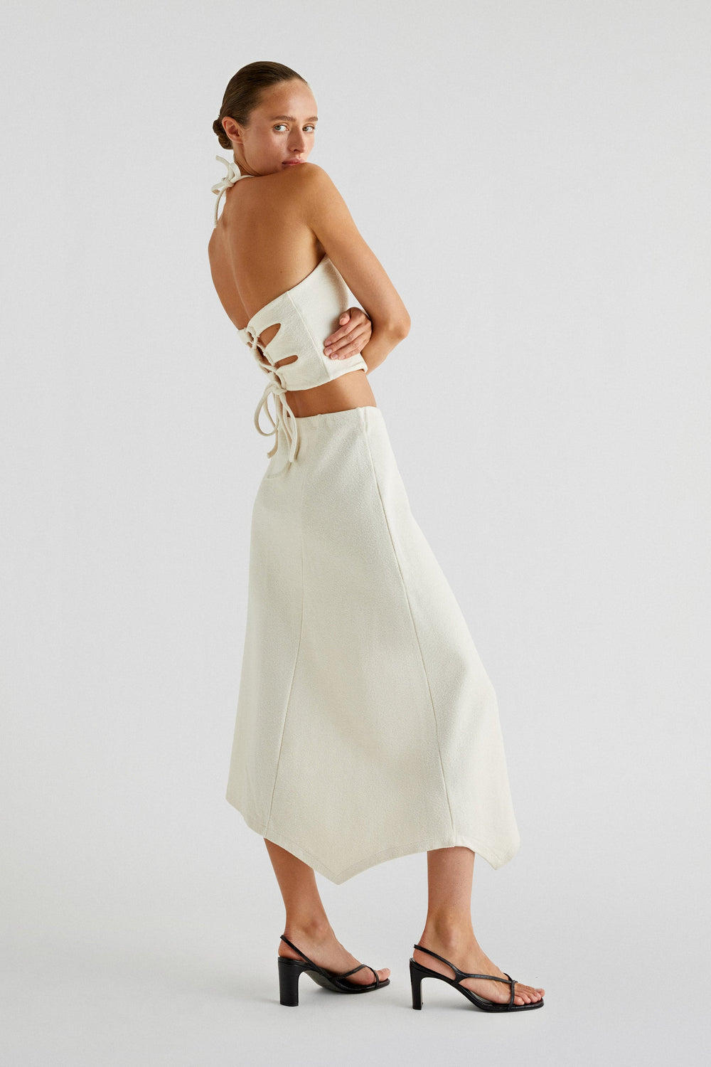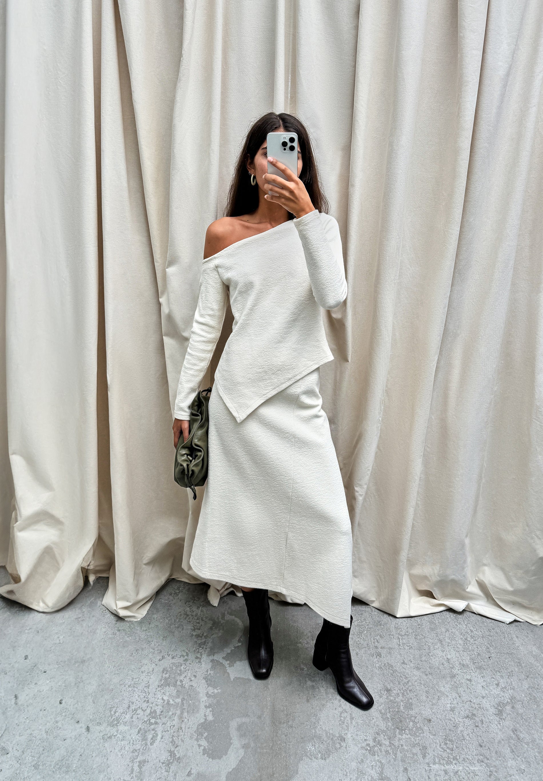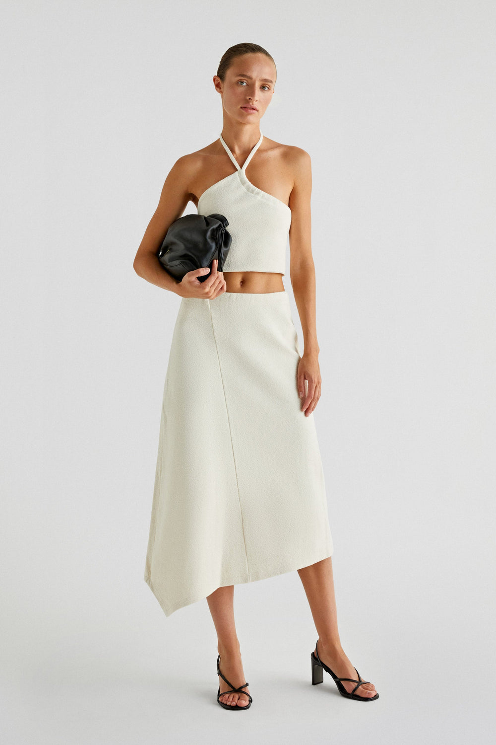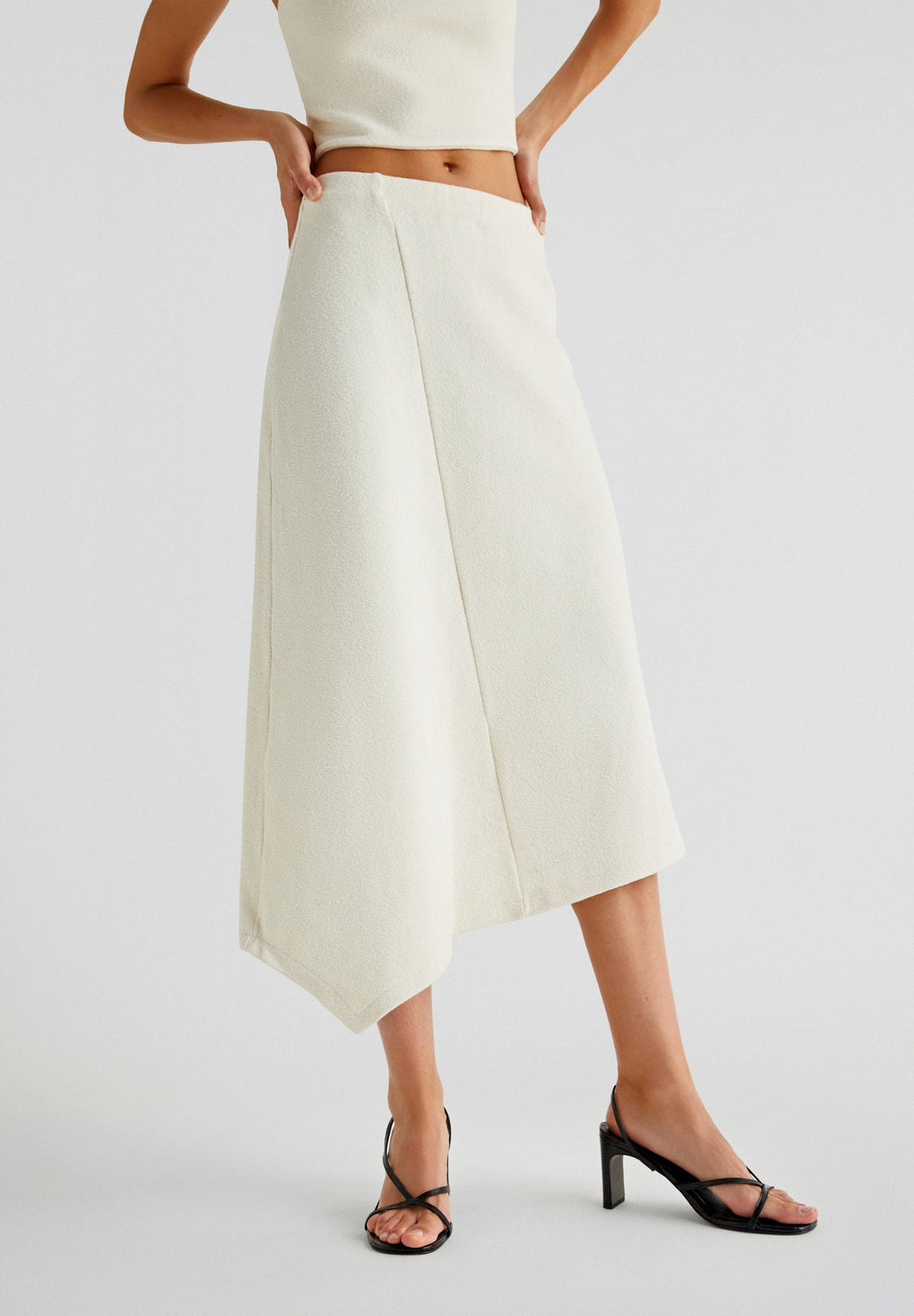 ASYMMETRIC KNIT MIDI SKIRT