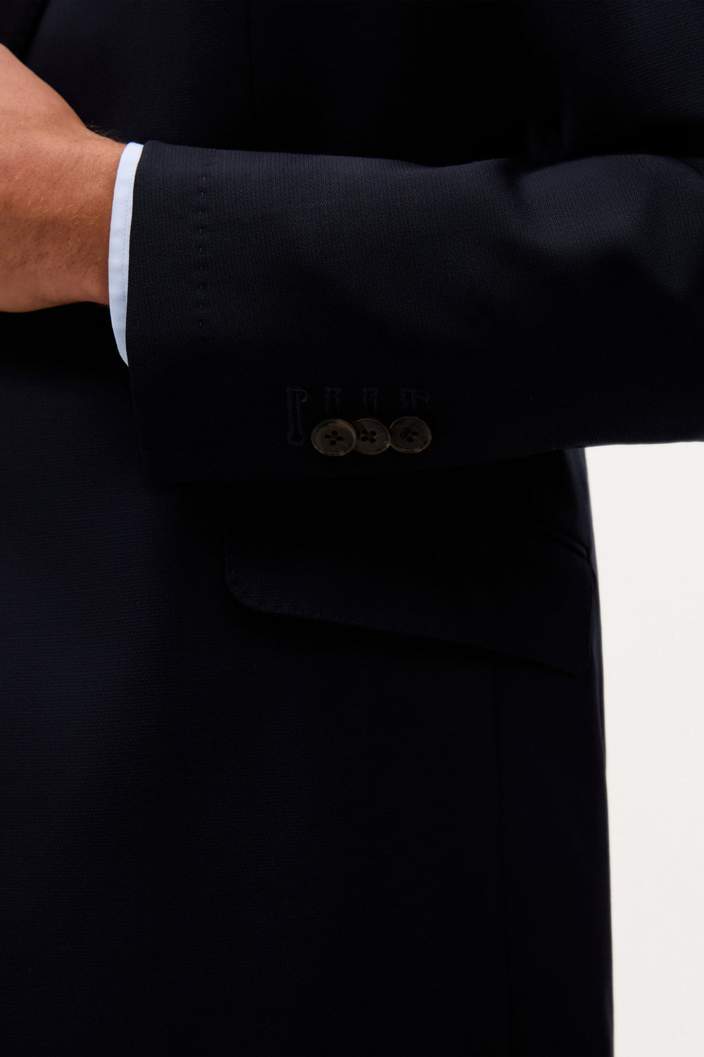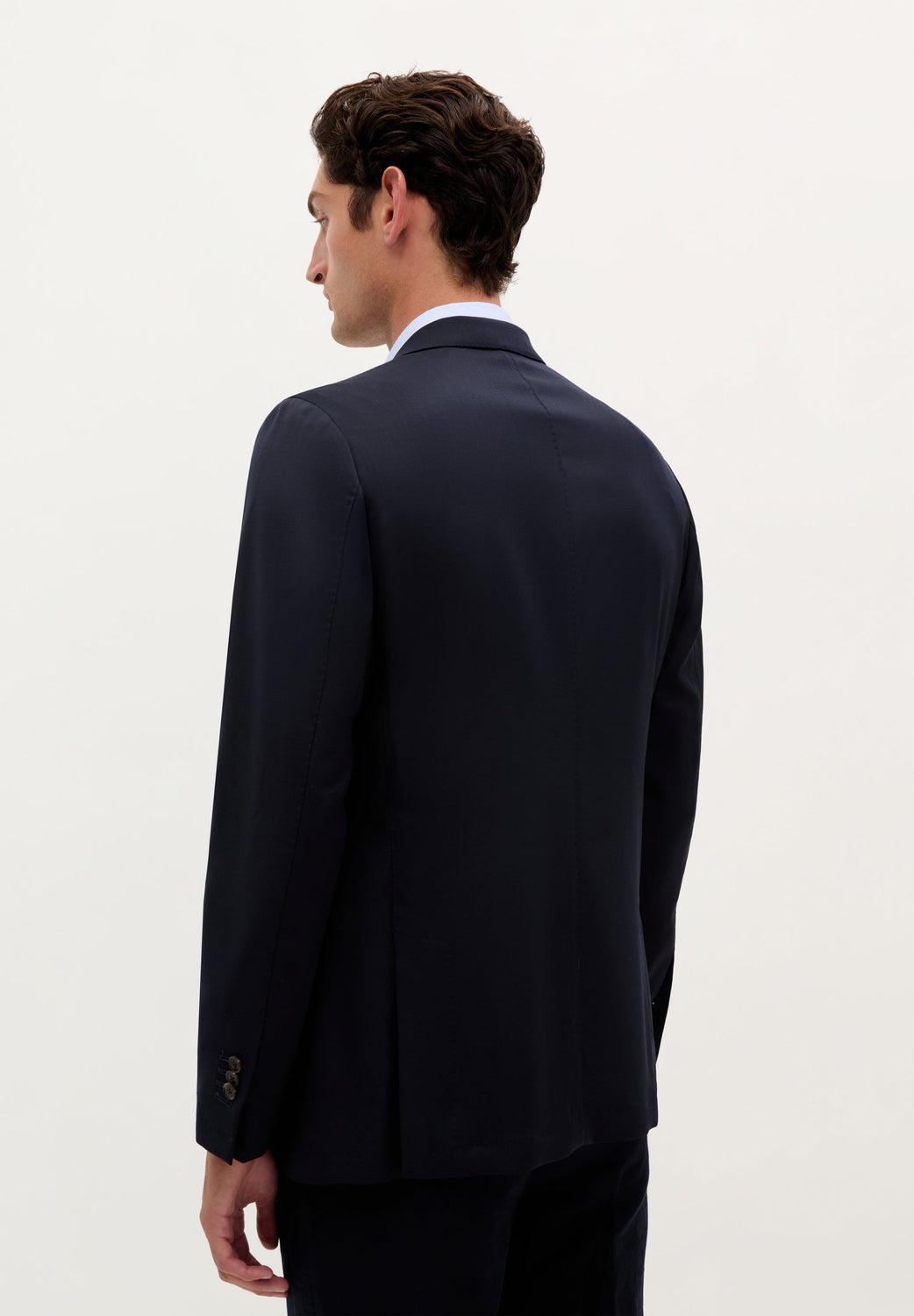 Jacket made of 100% wool. Single button fastening. Notched lapels. Chest welt pocket, side flap pockets. Back vent.