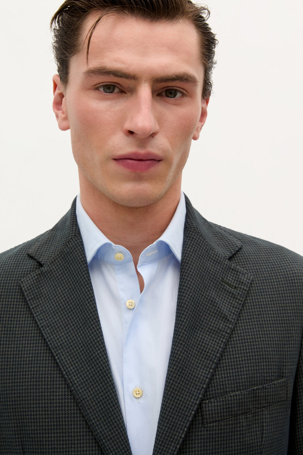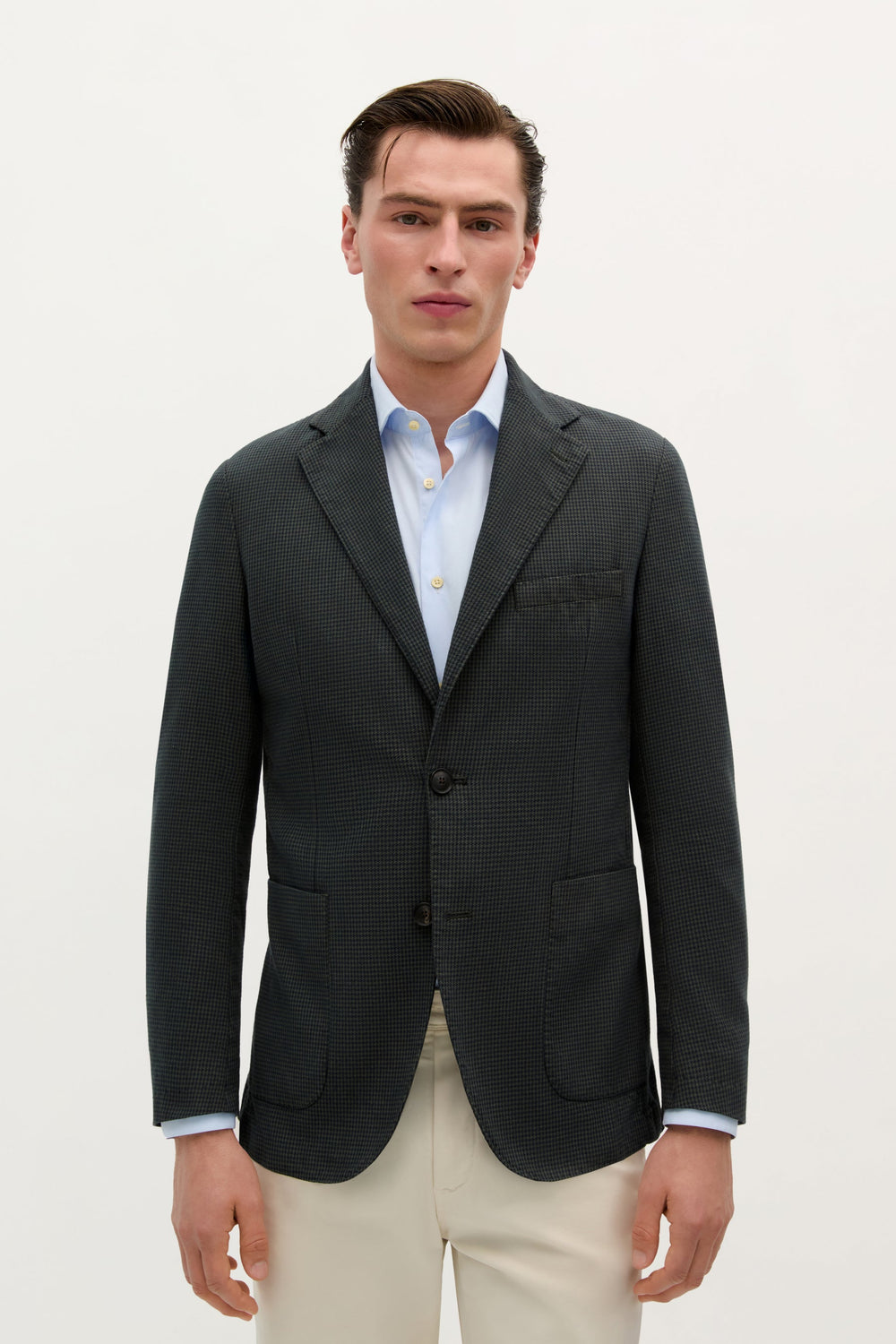 Blazer made of cotton and linen blend fabric. Slim fit, notched lapel collar, buttonhole and two-button fastening. Long sleeves with three-button cuffs and front pockets. Back vents and inner pockets.