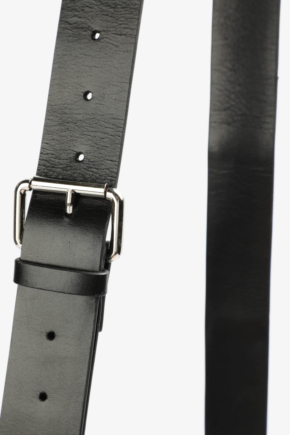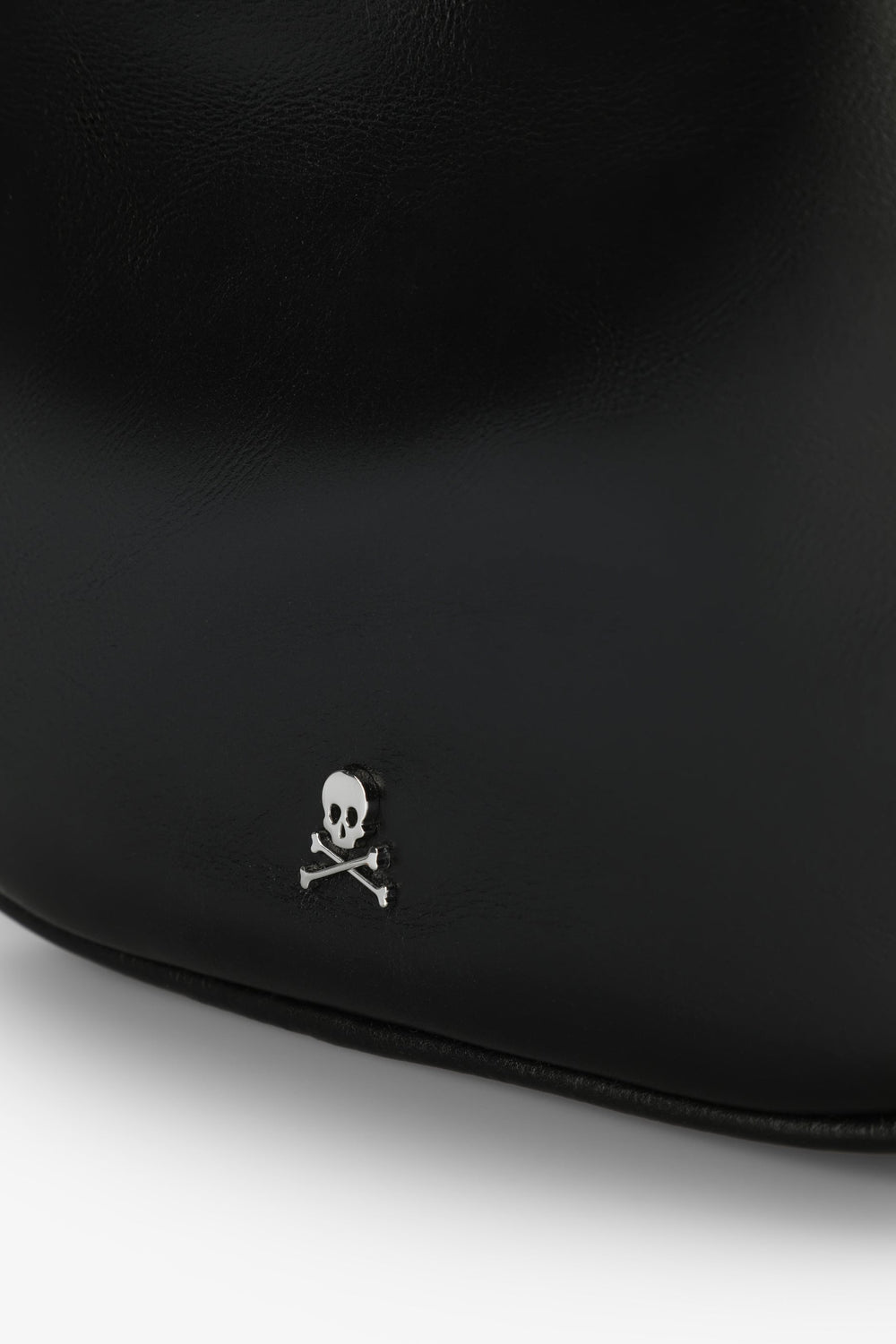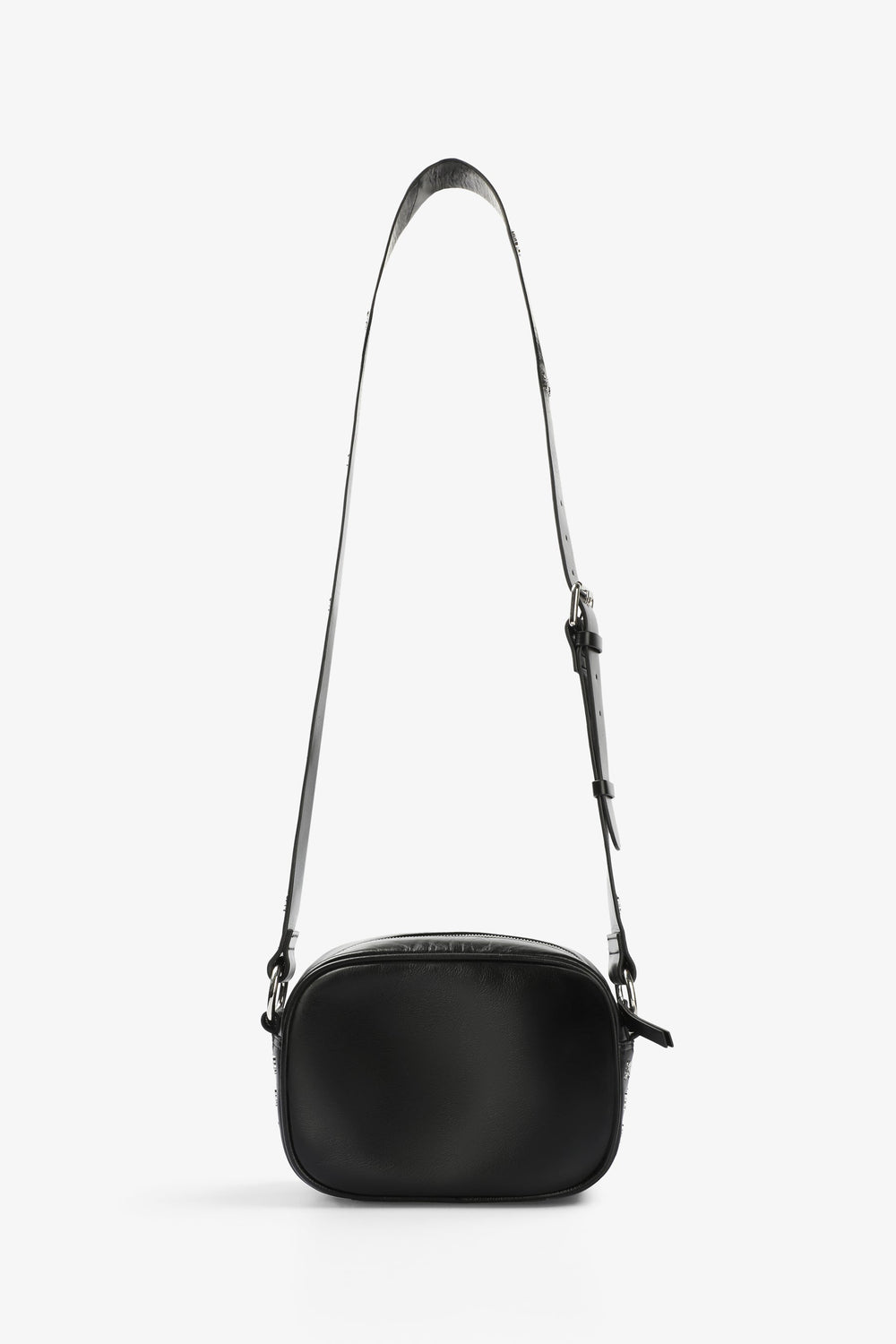 Crossbody bag made of 100% leather. Zip fastening and a long adjustable strap with metallic skulls. Metal logo detail.