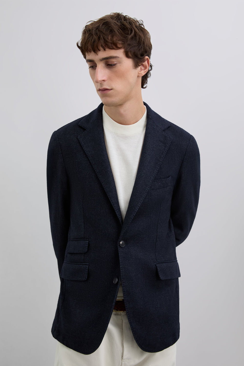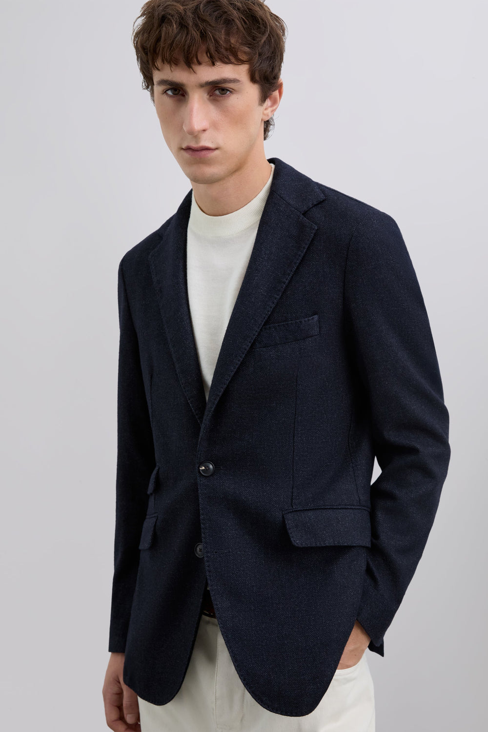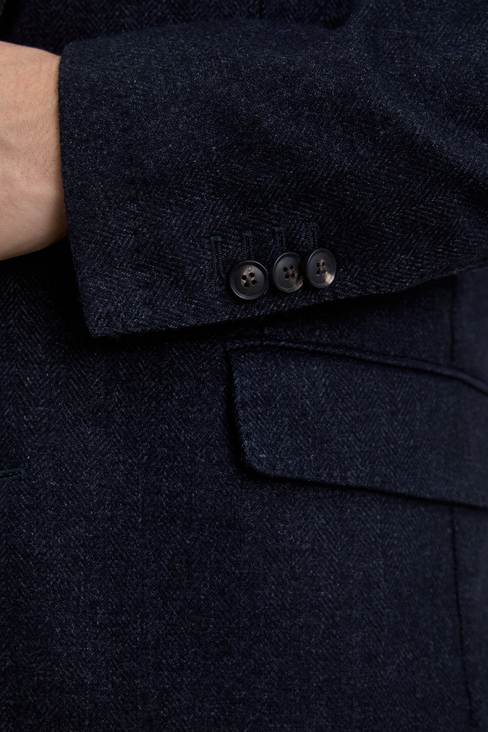 Blazer made of wool. Herringbone design. Three flap pockets. Two button fastening. Chest pocket with piping. Long sleeves.
