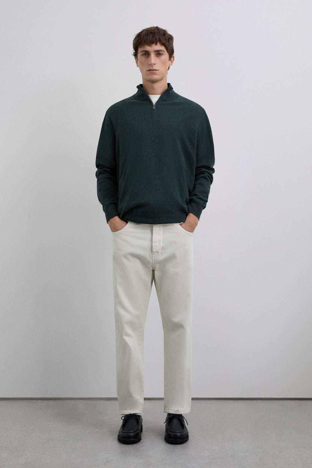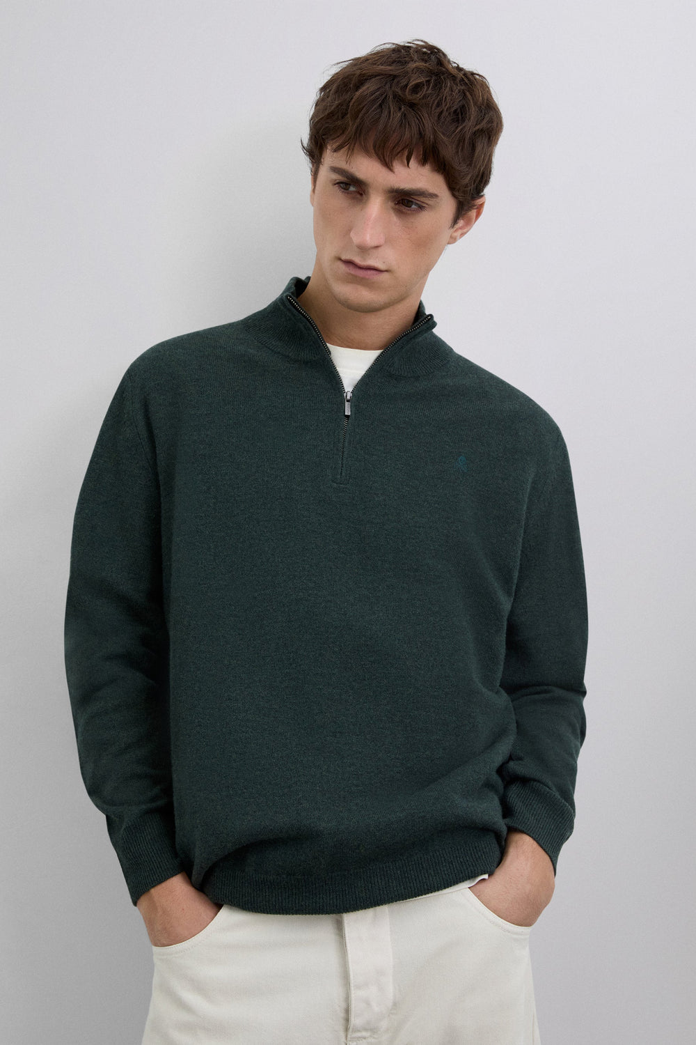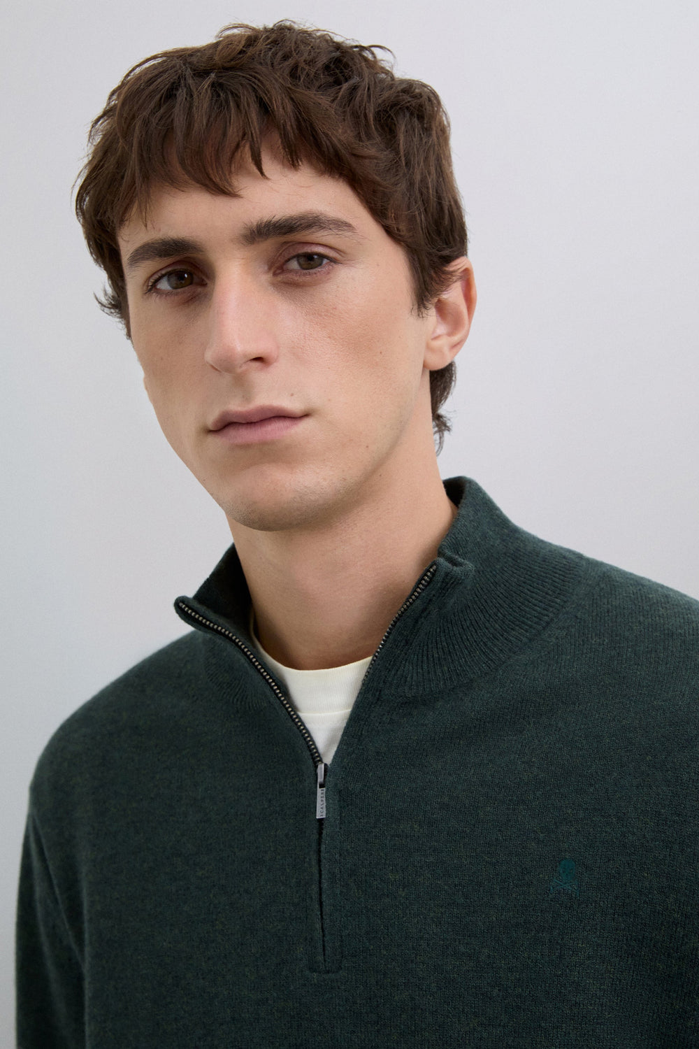 Sweater made of 100% wool. Regular Fit. Collar with half zip fastening. Long sleeves. Matching embroidered skull detail on the chest. Ribbed trim.