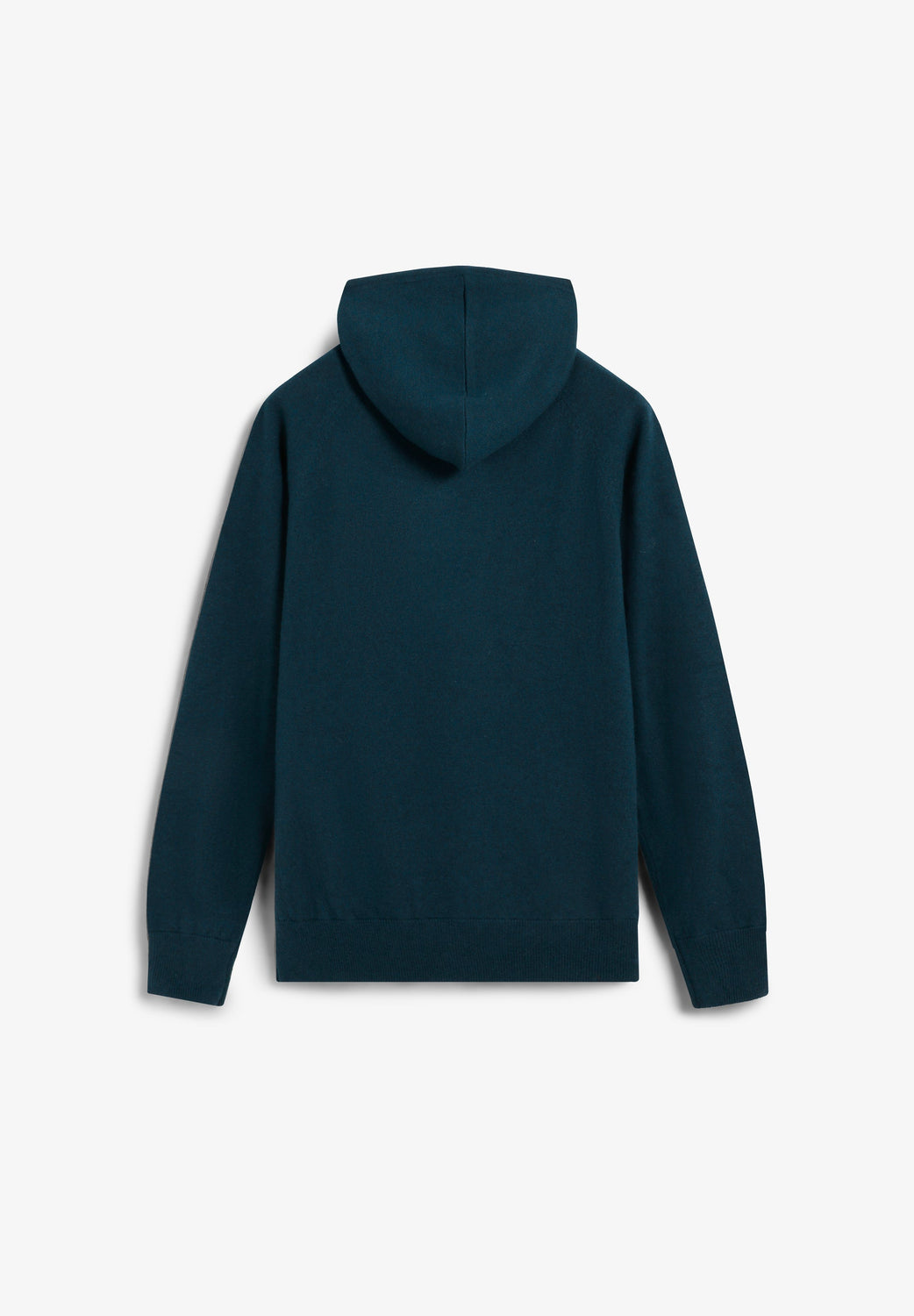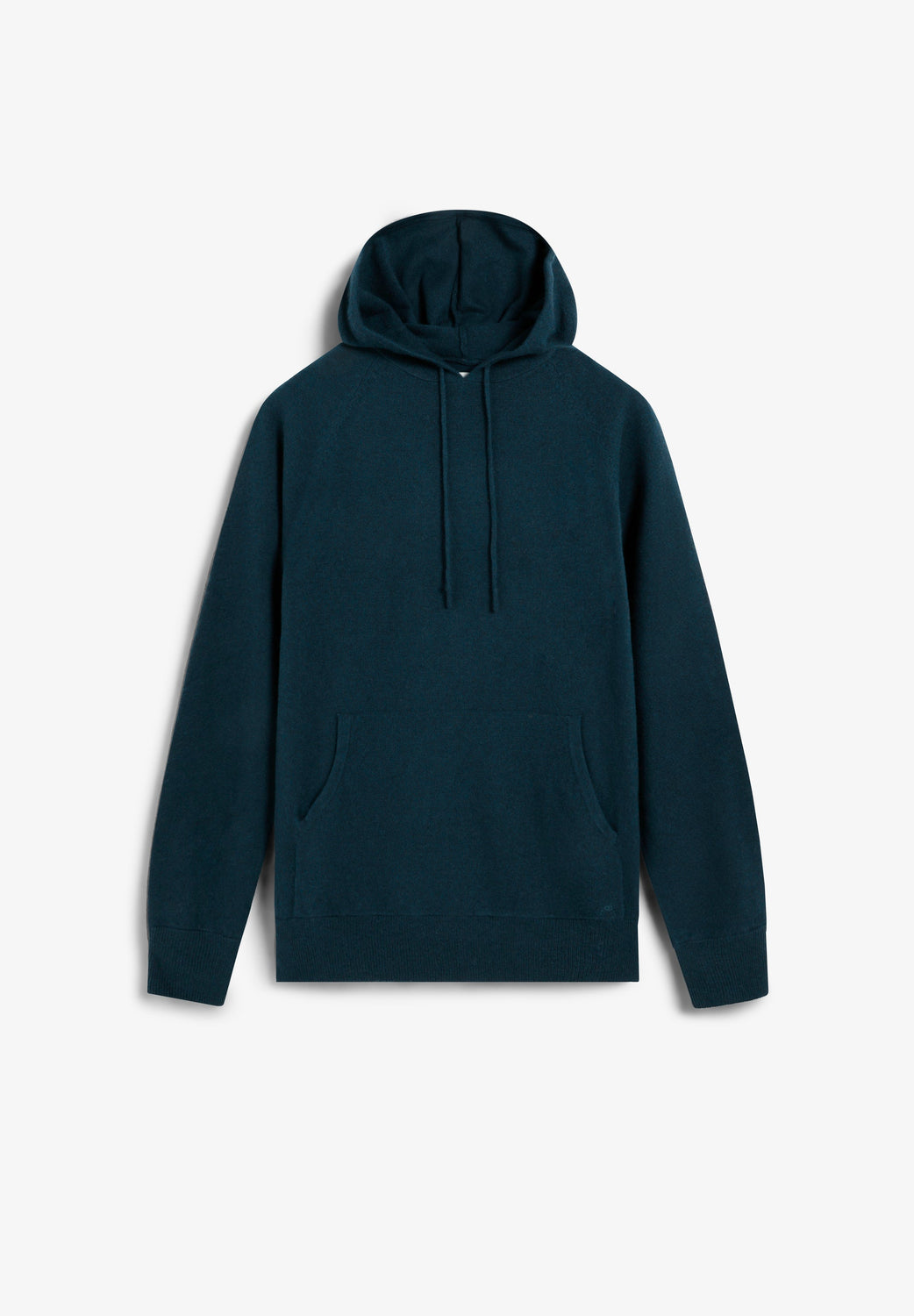 Sweater made of 100% wool. Adjustable drawstring hood. Long sleeves. Pouch pocket on the front. Ribbed cuffs and waistband.
