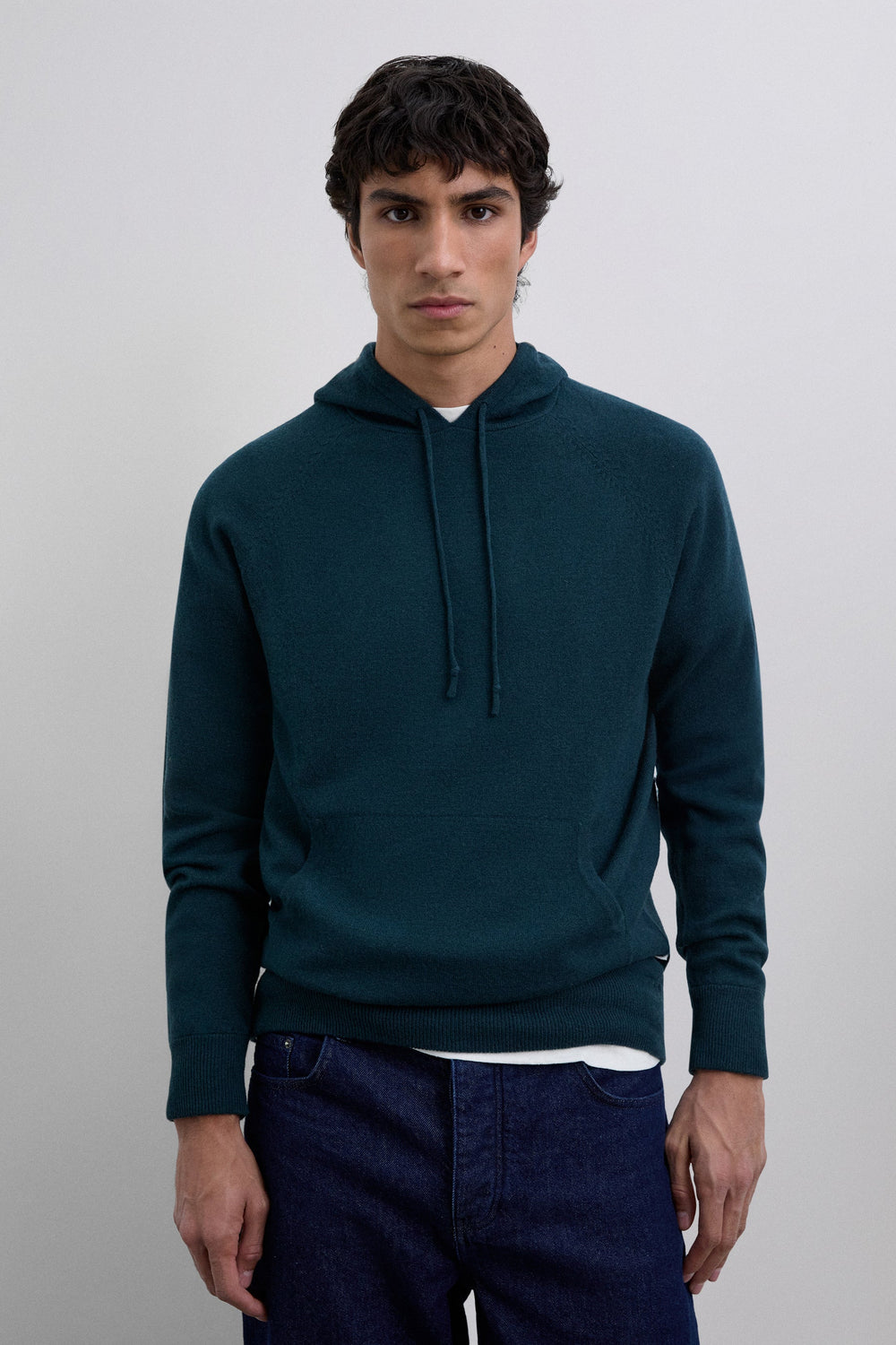 WOOL SWEATER WITH ADJUSTABLE HOOD