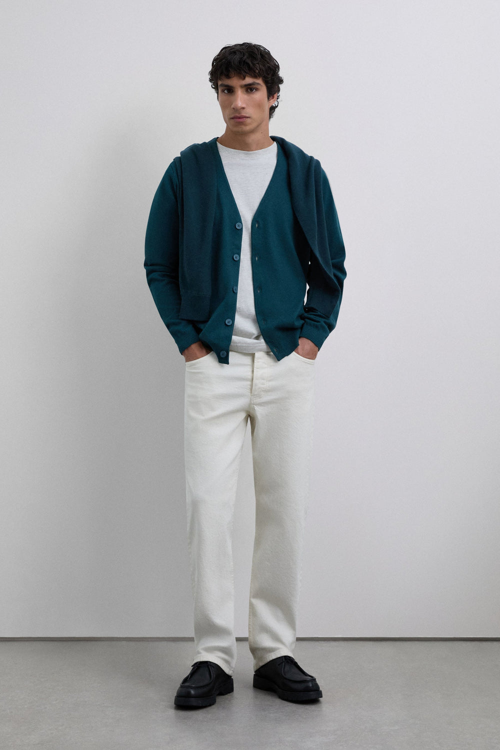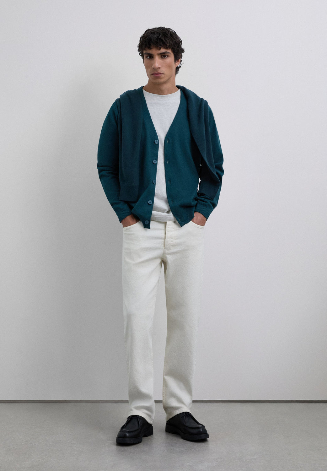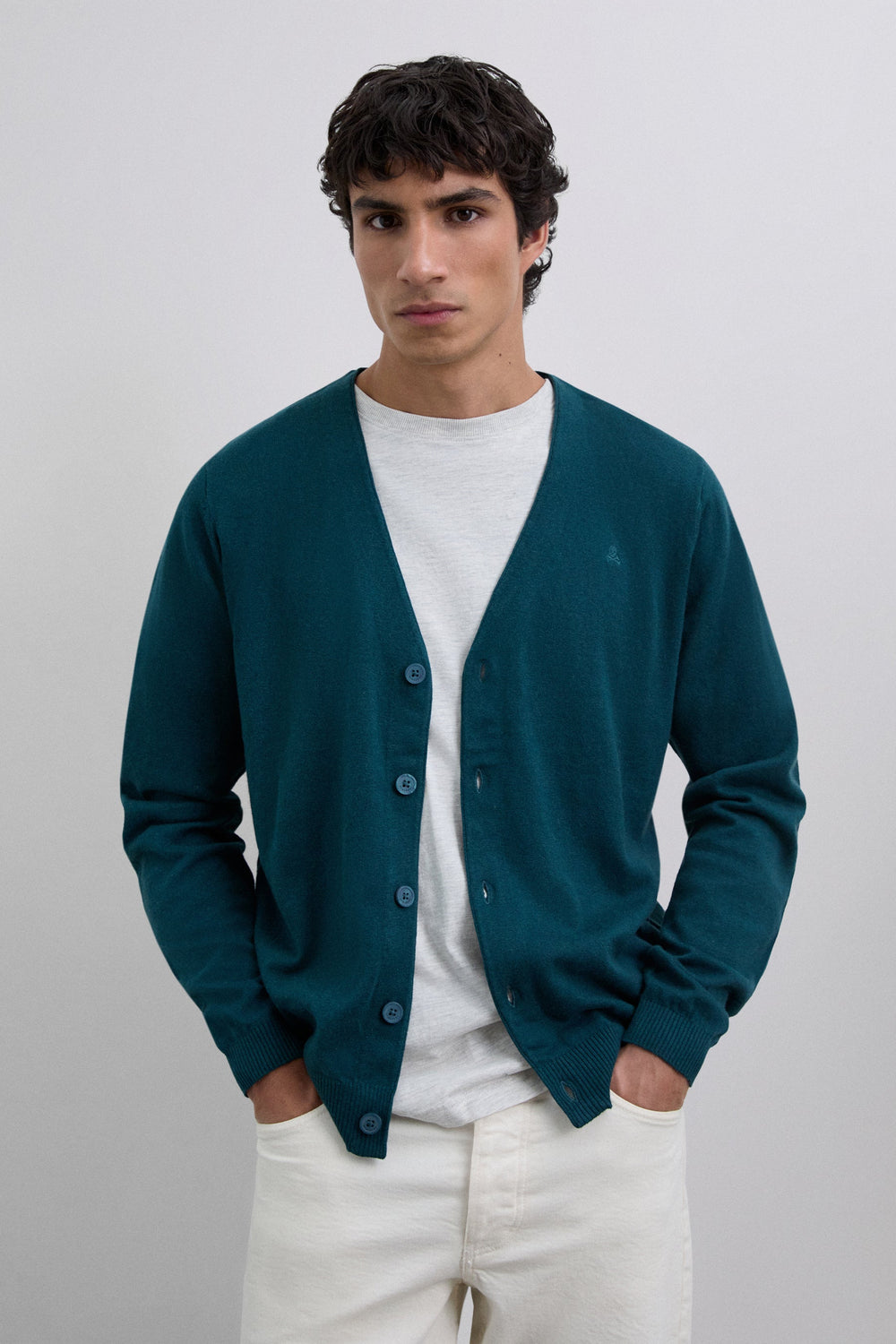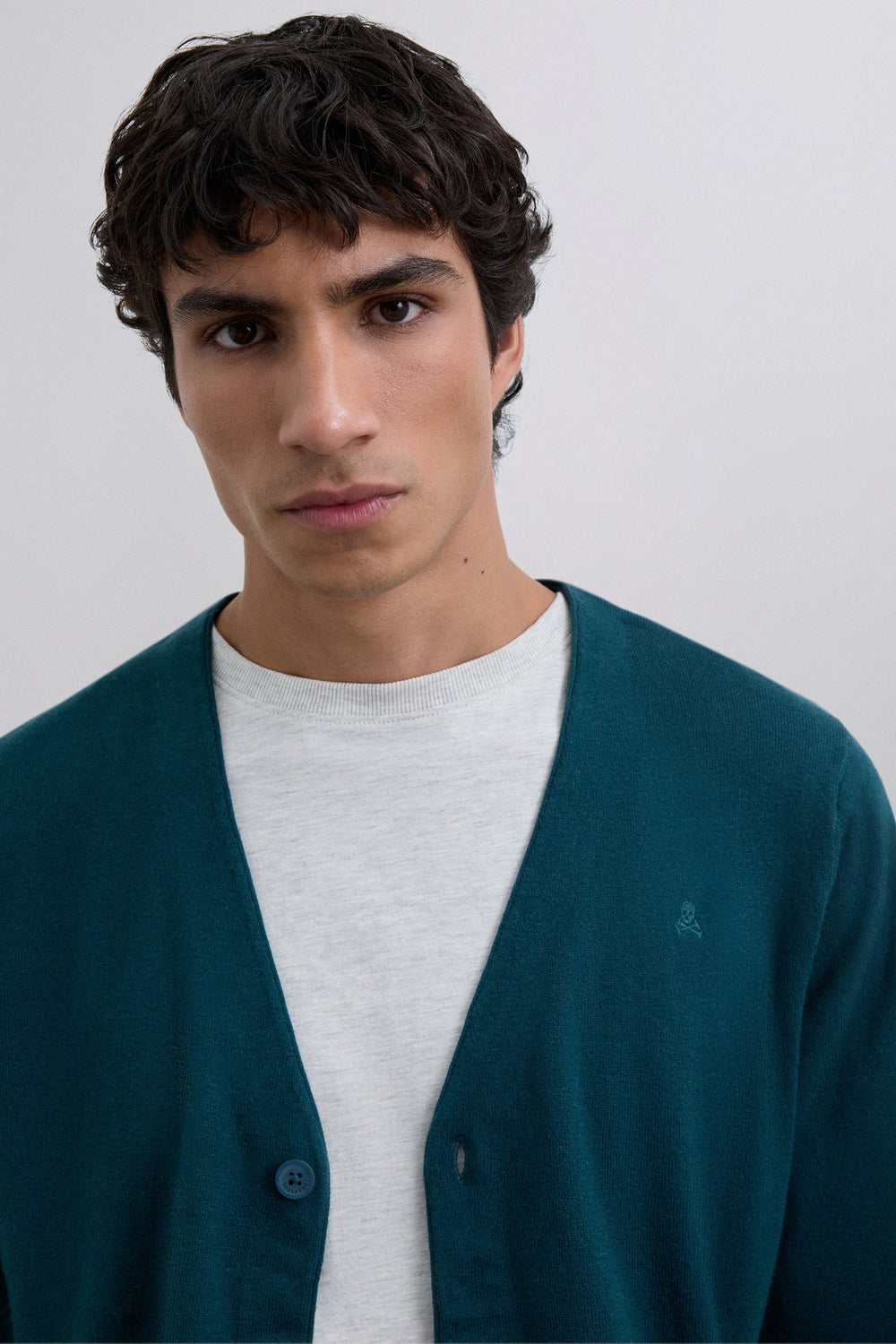 Cardigan made of BCI cotton. V-neck. Button fastening. Long sleeves. Matching embroidered skull detail on the chest. Ribbed trim on waistband and cuffs.
