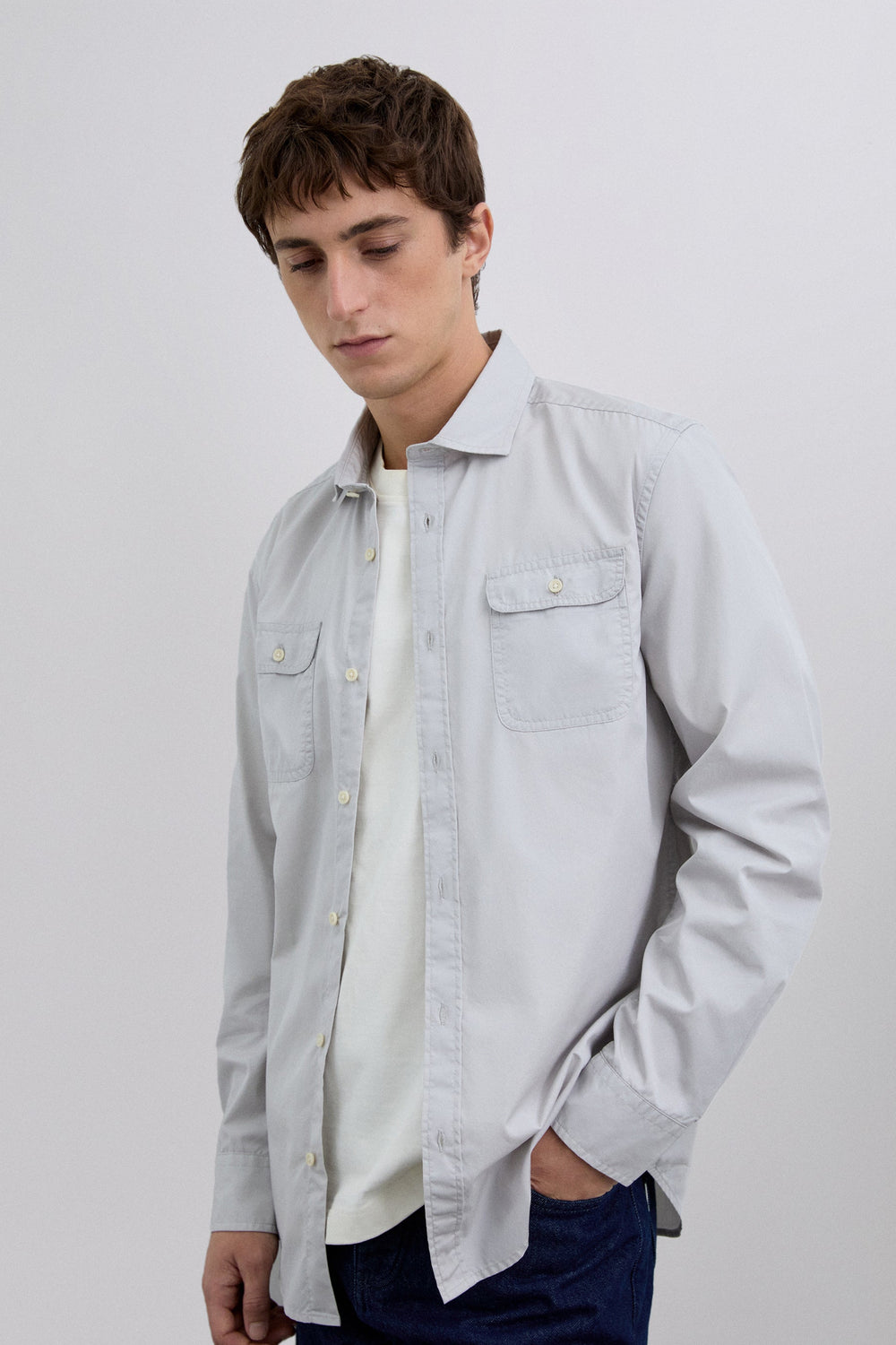Shirt made of cotton. Regular Fit. Long sleeves with buttoned cuffs. Front button fastening. Patch pockets on the chest.