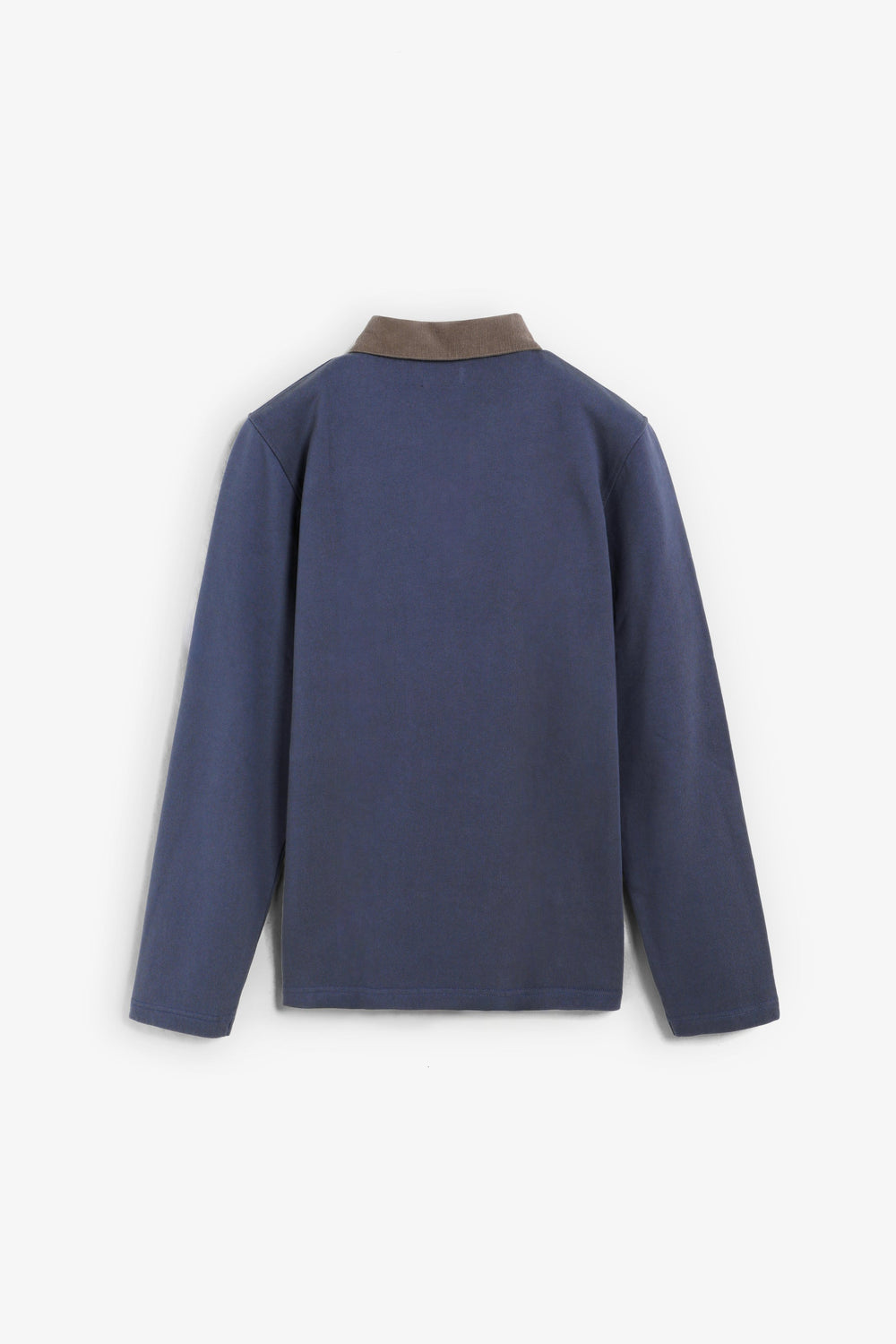 Polo shirt made of 100% BCI cotton. Contrast corduroy collar with button fastening. Long sleeves. Matching embroidered logo on the chest.