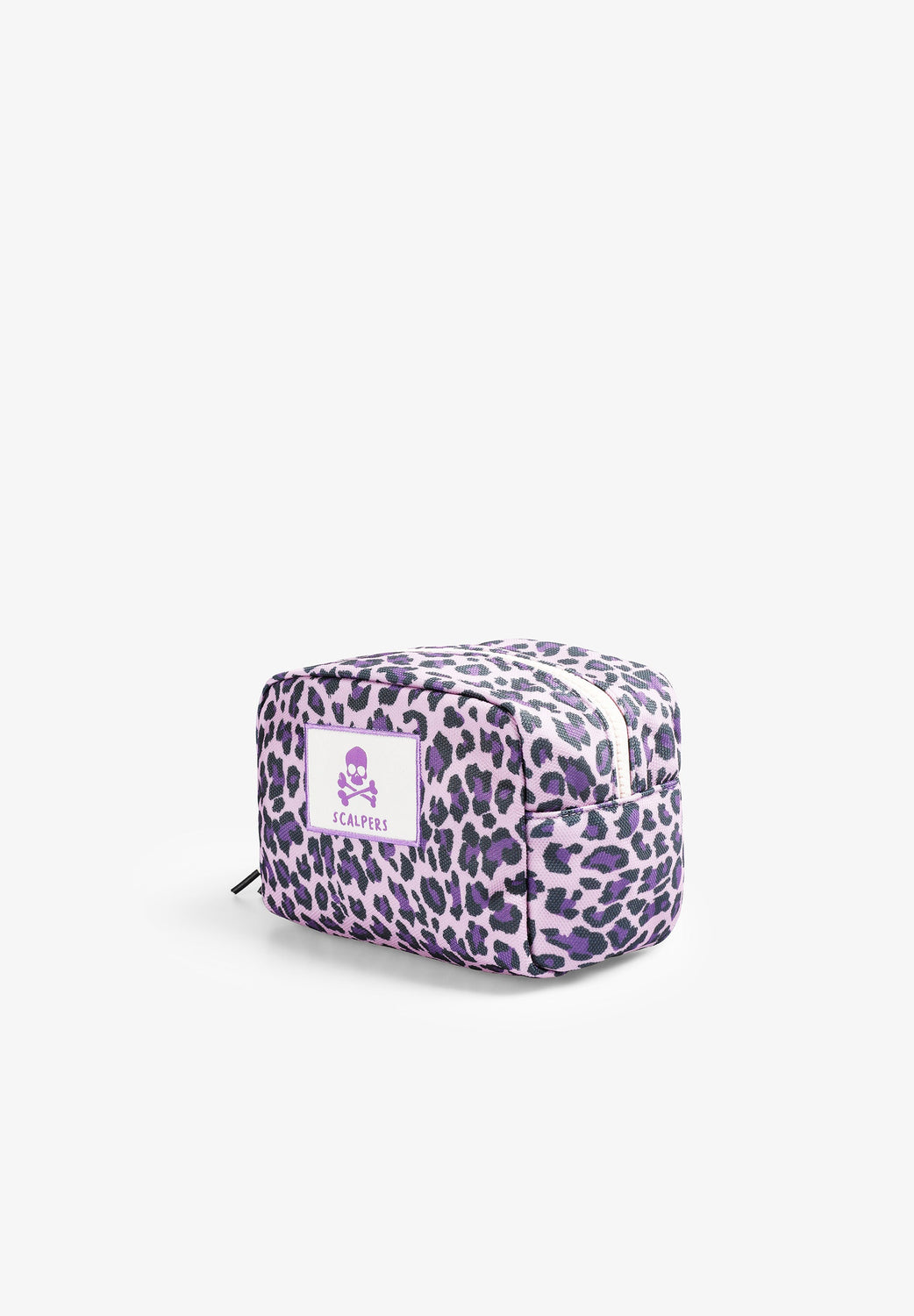 Toiletry bag with embroidered label with logo and skull. Animal print. Zip fastening