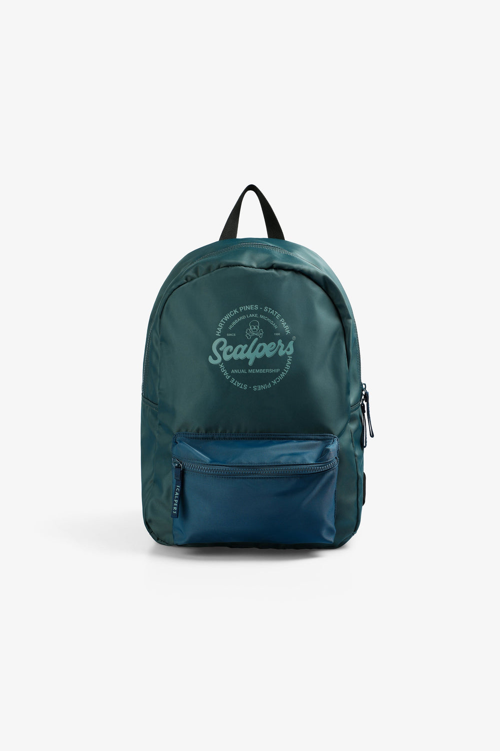 Backpack with front logo print. Made of 100% polyester. Zip fastening. Back straps. Top handle. Front zipped pocket. Height: 41 cm / Width: 31 cm / Depth: 14 cm