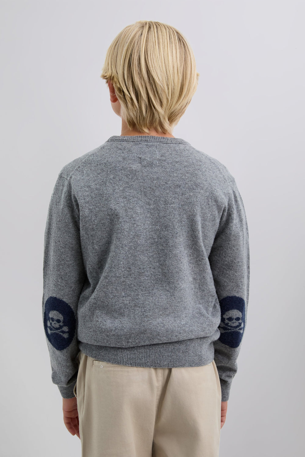 Sweater made of wool and polyamide blend. Regular fit. Round neck. Long sleeves. Contrast embroidered skull detail. Ribbed trim. Skull patch detail on the elbow pads.