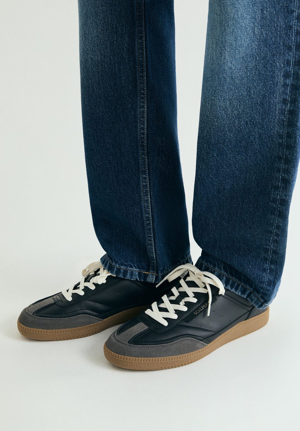 Retro style trainer made of nappa leather and cow suede. Reinforced split leather toe cap. Contrast heel counter. Contrast TPR sole. Engraved logo on heel and side.