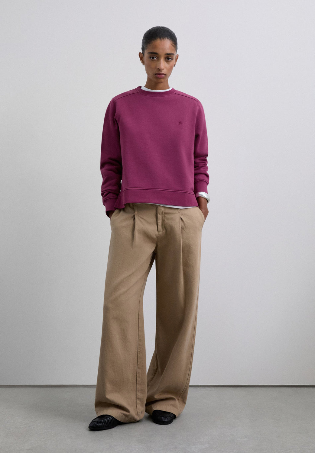 Sweatshirt made of 100% organic cotton. Regular fit, round neck and long sleeves with ribbed cuffs. Asymmetric hem, longer back. Embroidered skull detail on the chest.