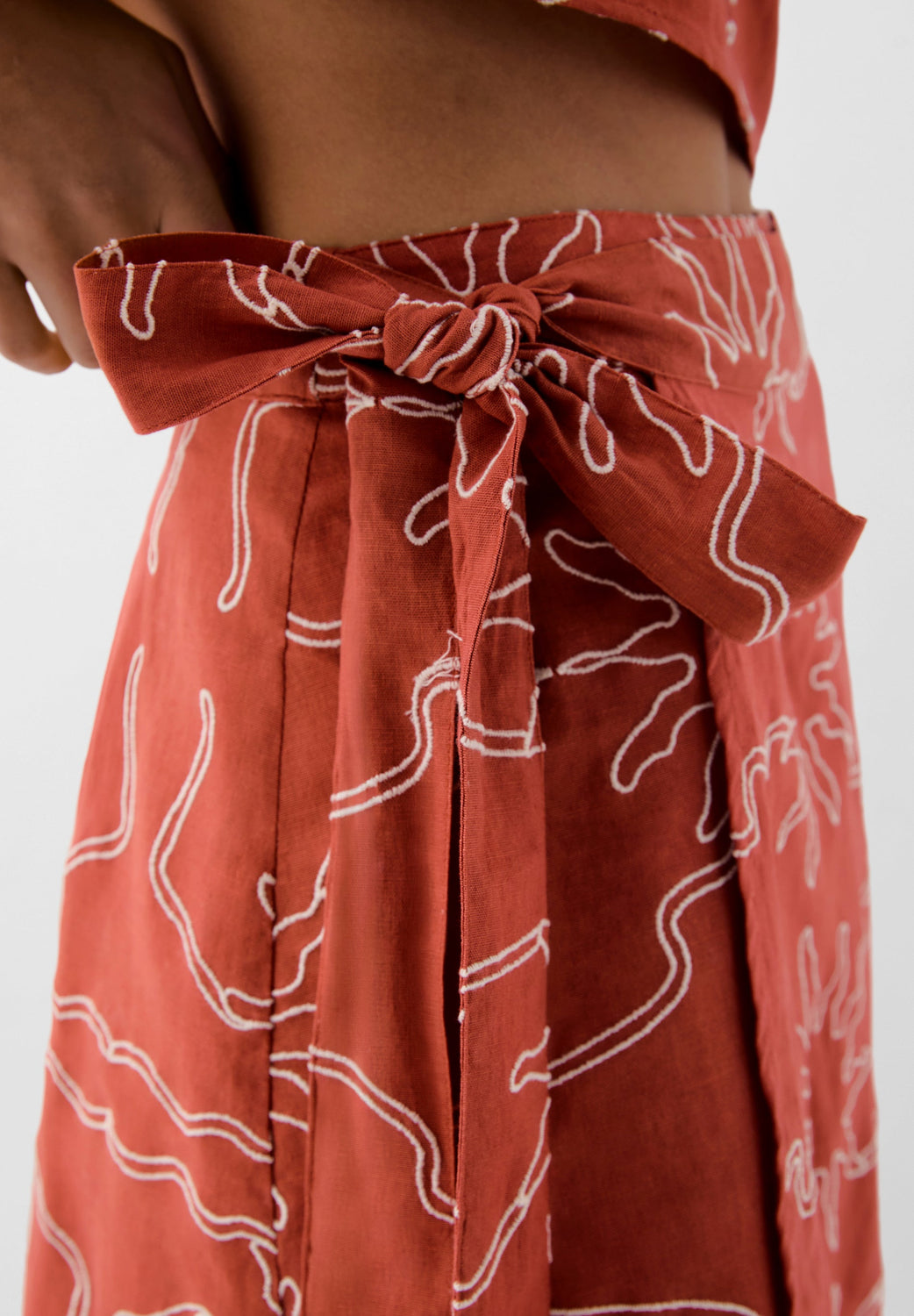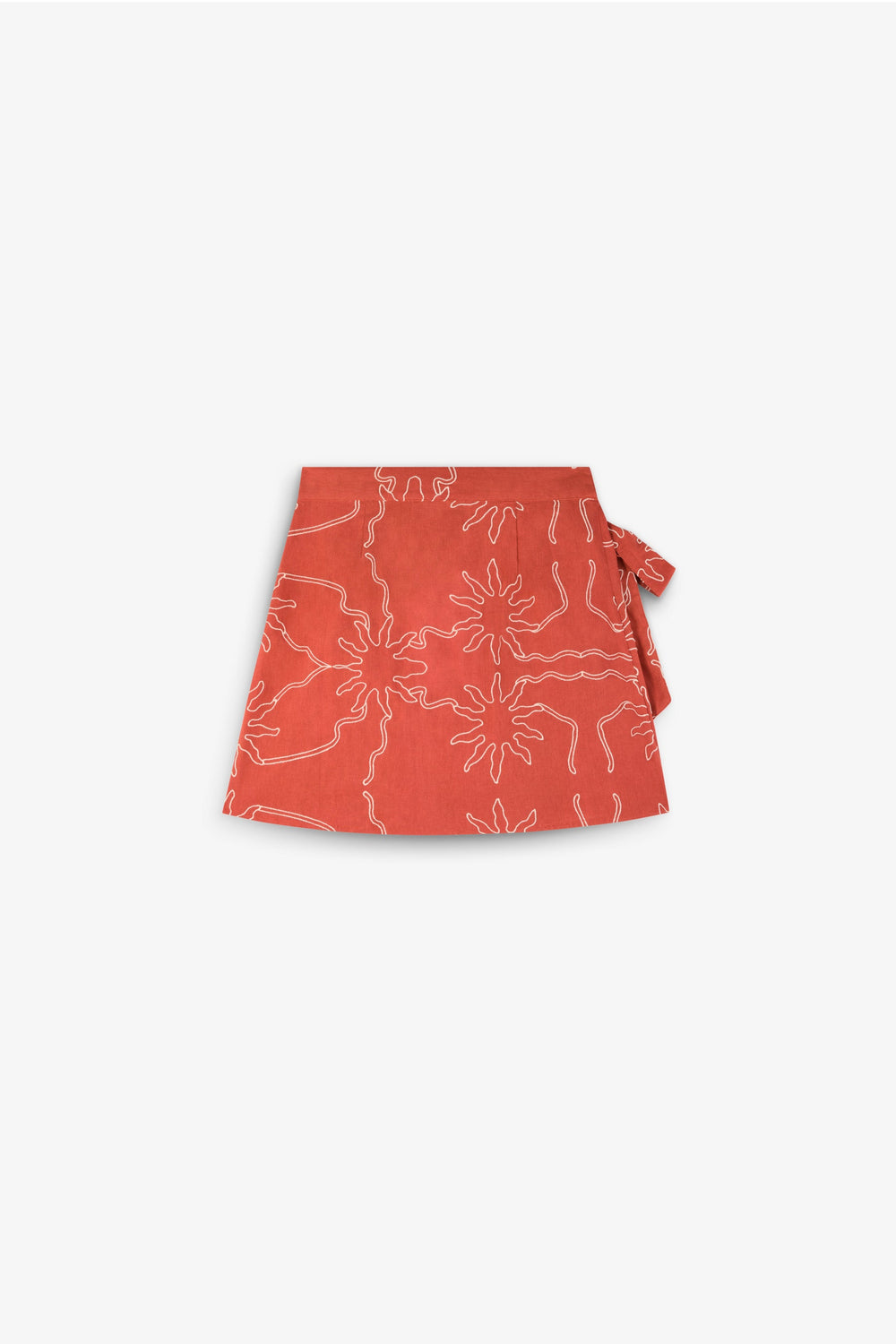 This skirt is designed in collaboration with Scalpers and belongs to the ROBIN x SCALPERS collection. Skirt made of a linen and organic cotton blend. Contrast embroidered motifs. Adjustable with side knot.