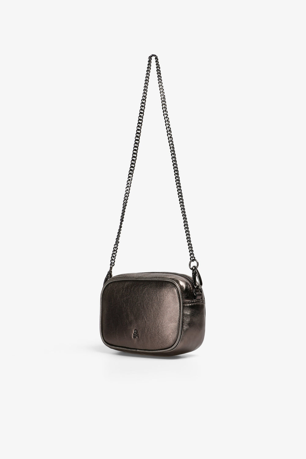 Small size bag. Made of 100% leather. Zip fastening. Long strap. Logo detail on the front.