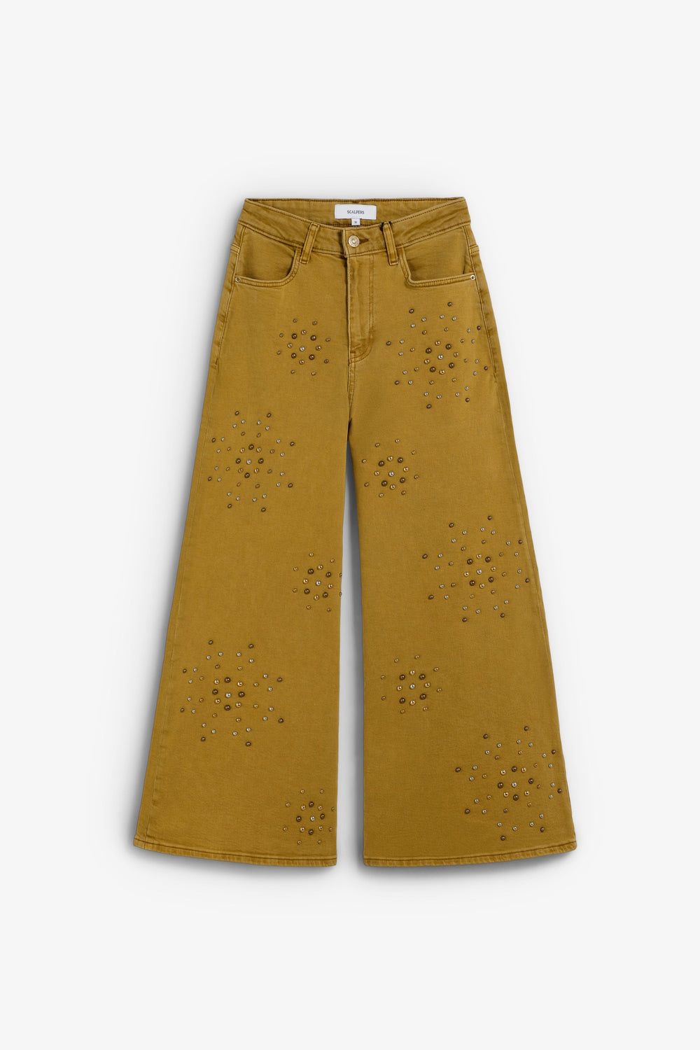 Jeans made of cotton and elastane. Stud detailing on the front. Culottes with high waist and zip and button fastening. Front and back pockets.