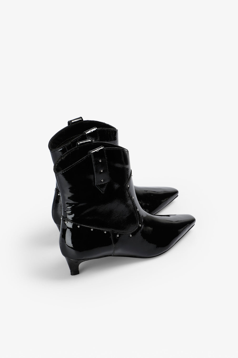 Boots made of 100% leather. Stud details. Kitten Heel. Pointed finish.