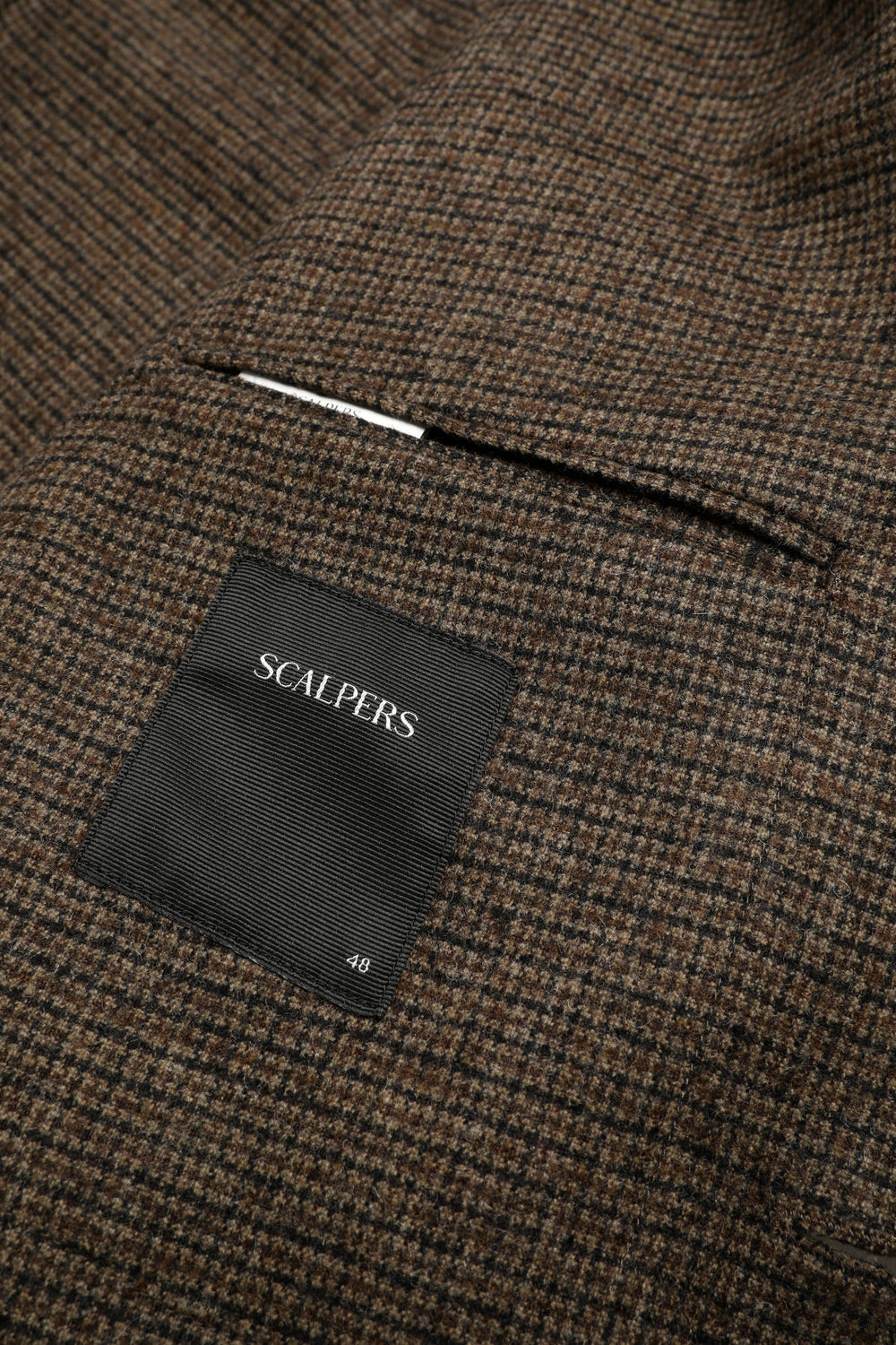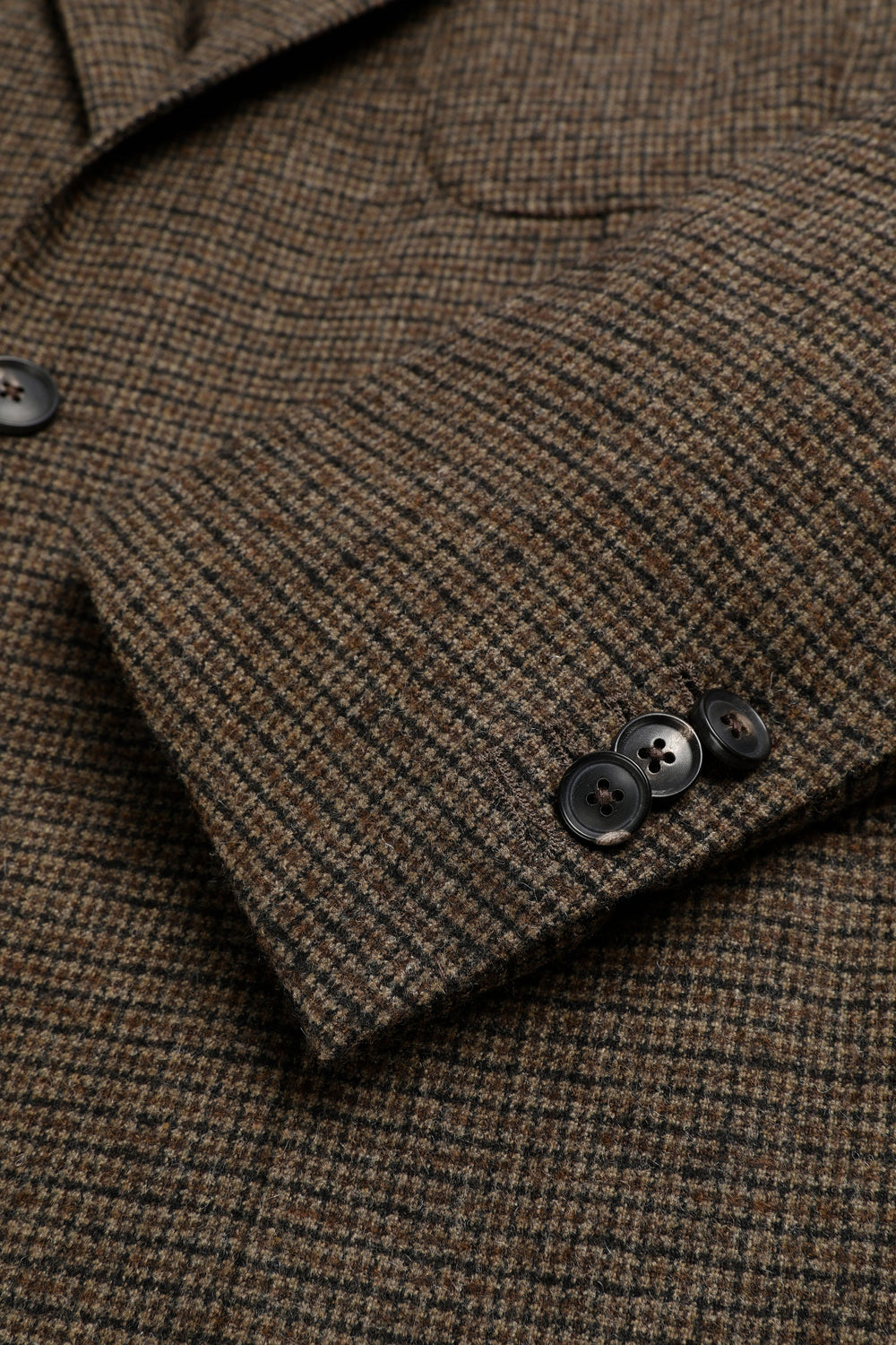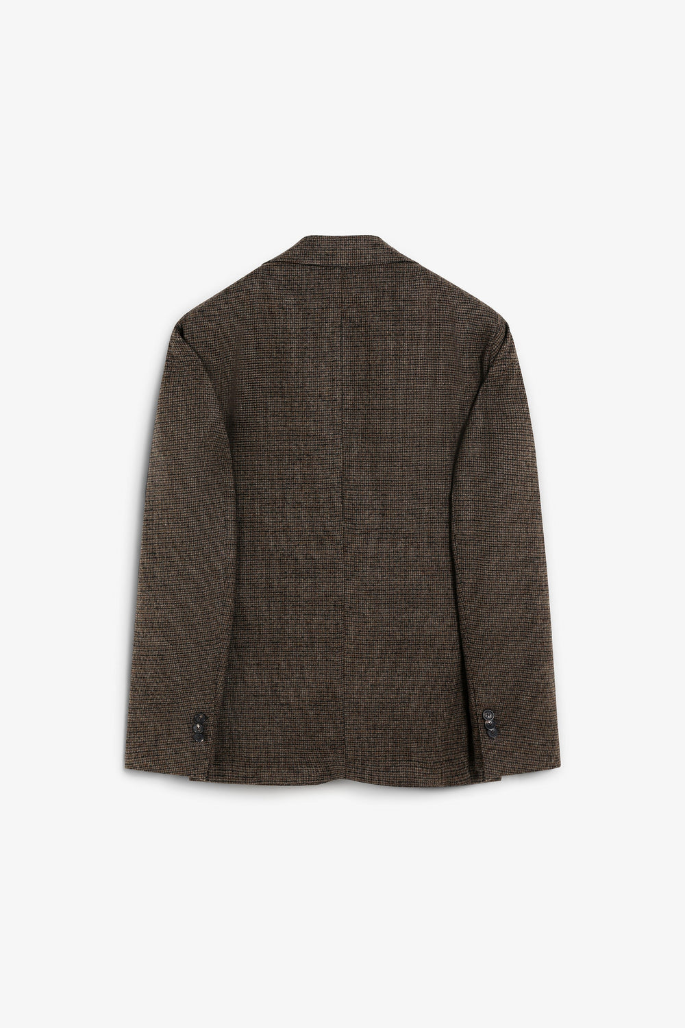 Checked blazer made of wool. Regular lapels. Three patch pockets. Two button fastening at the front. Long sleeves.