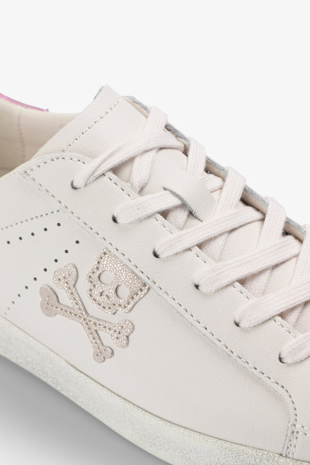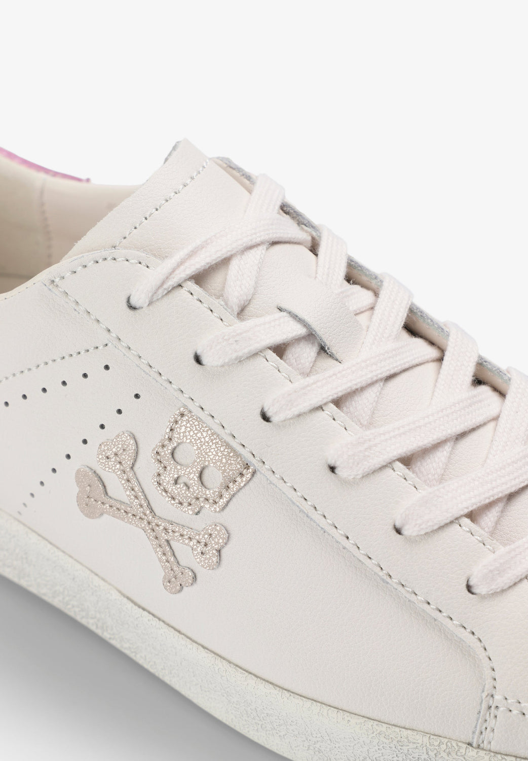 Sneakers with contrast side skull. Worn effect rubber sole. Contrasting heel with matching logo. Lace-up fastening.