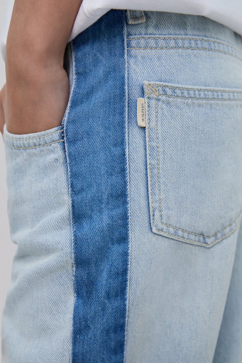 Wide led jeans made of 100% BCI cotton. Two button and zip fastening. Belt loops at the waist. Contrast seam detail on the side. 100% cotton lining.