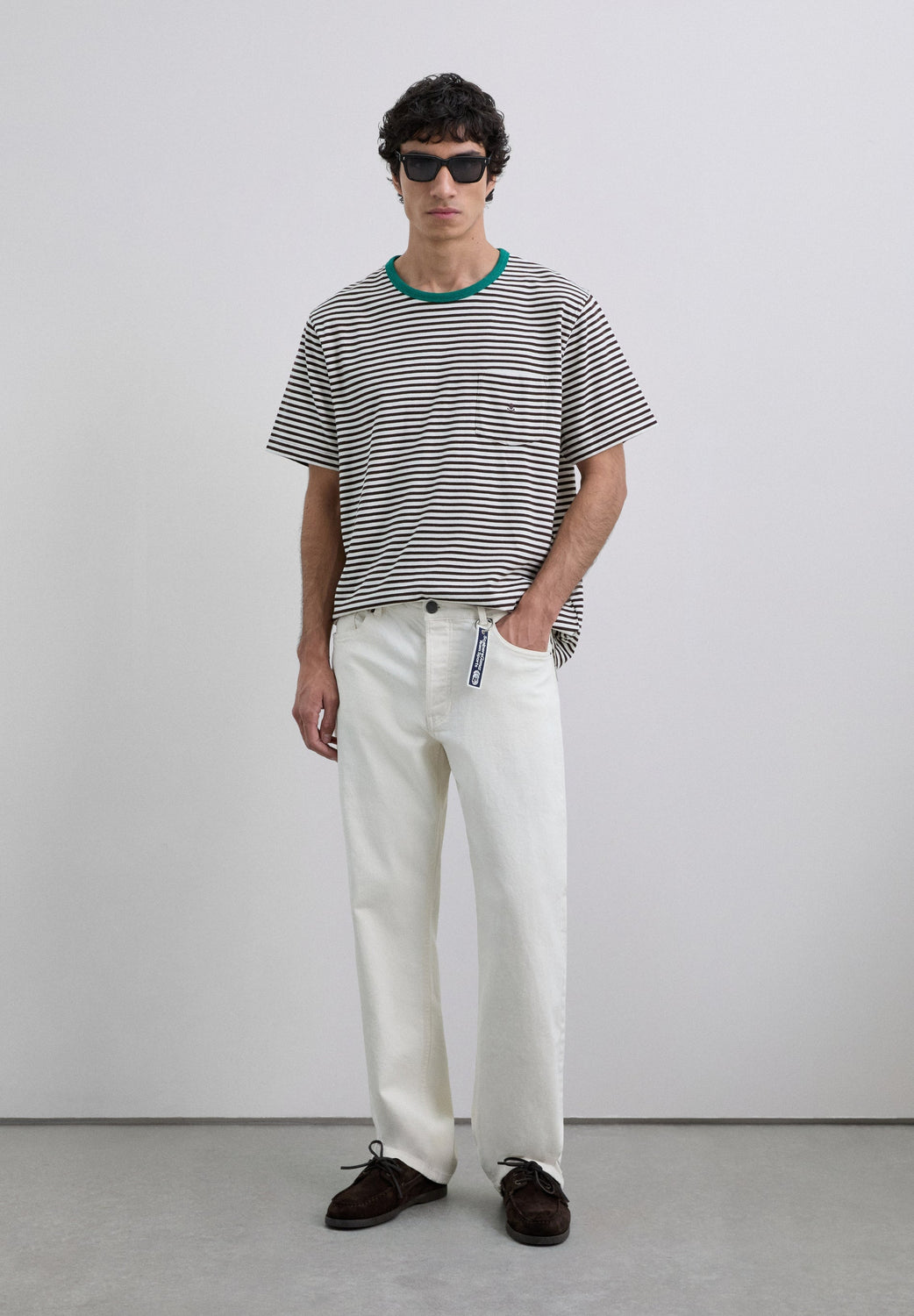 T-shirt made of 100% BCI cotton. Stripe print. Short sleeve. Contrast round neck. Pocket detail on the chest. Embroidered skull.
