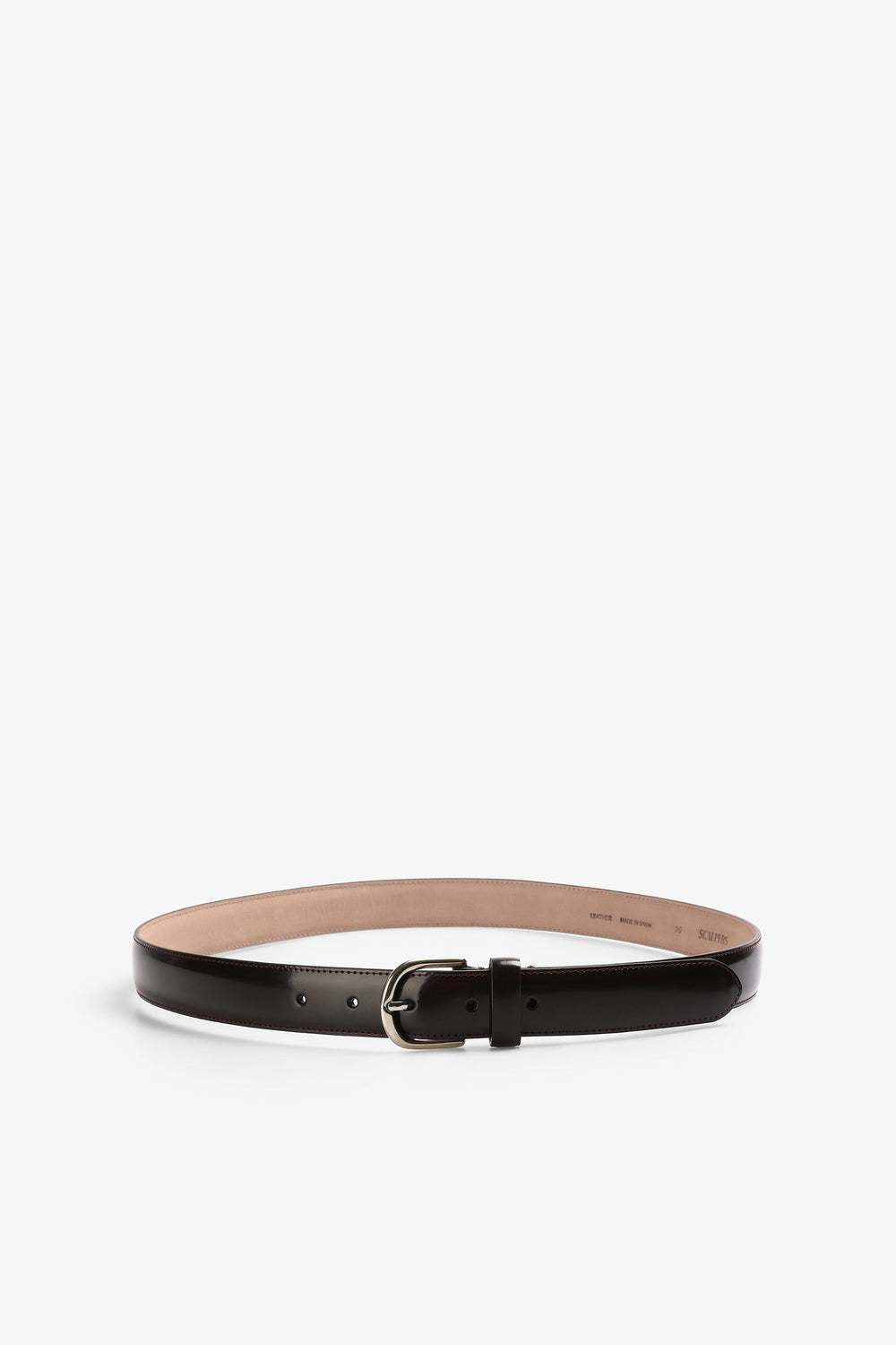 Belt made of 100% leather with a shiny finish. Metal buckle.
