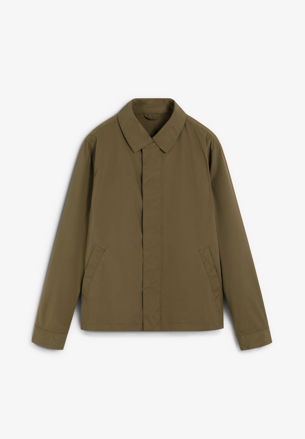 Jacket made of a technical fabric. Concealed zip and press-stud fastening. Two side pockets. Inner pocket. Adjustable cuffs. Slightly stretchy hem.