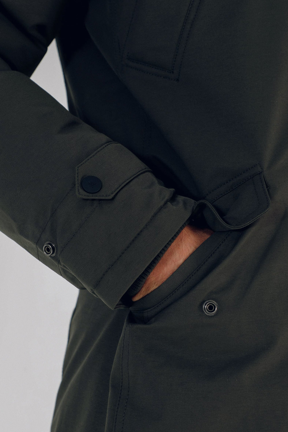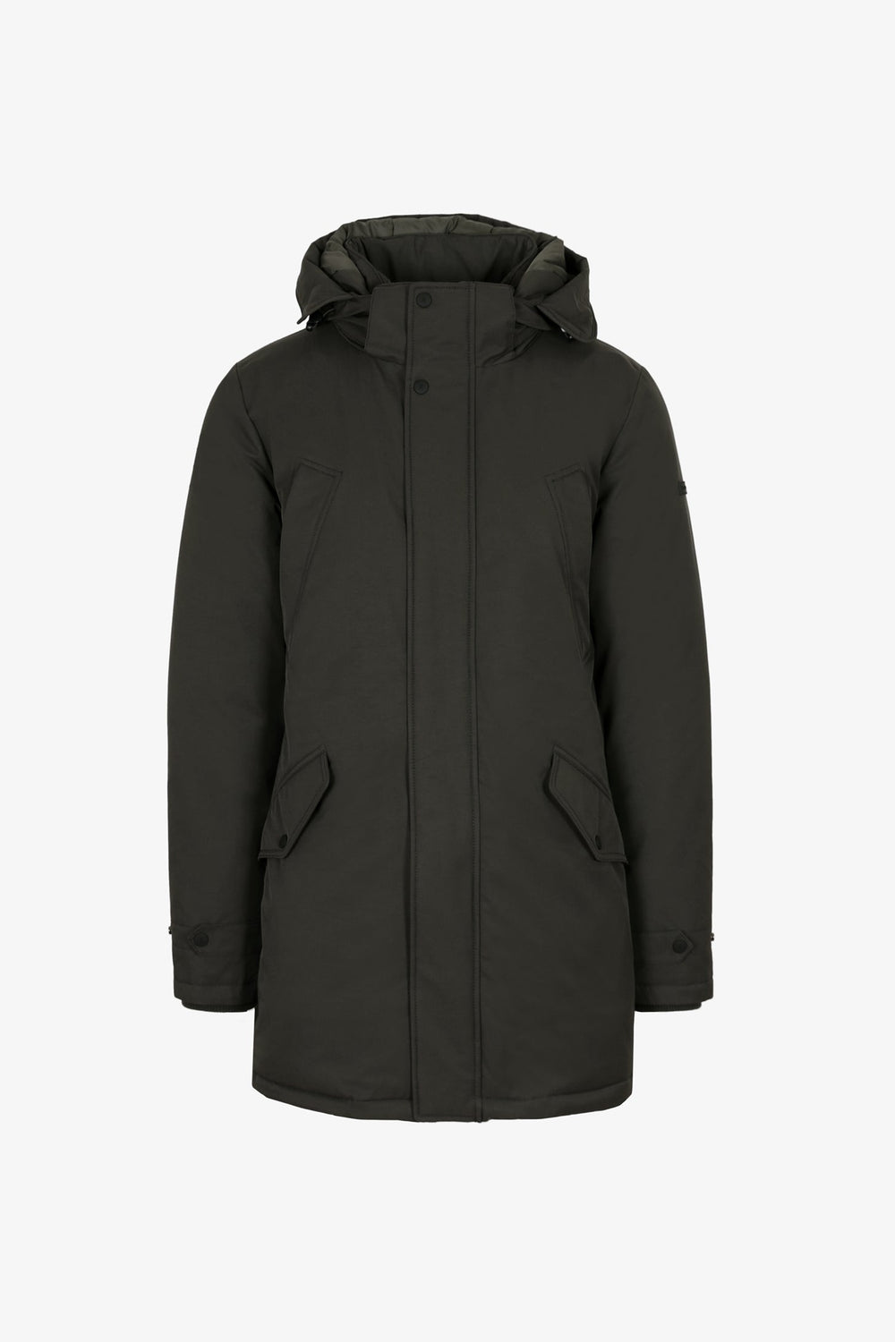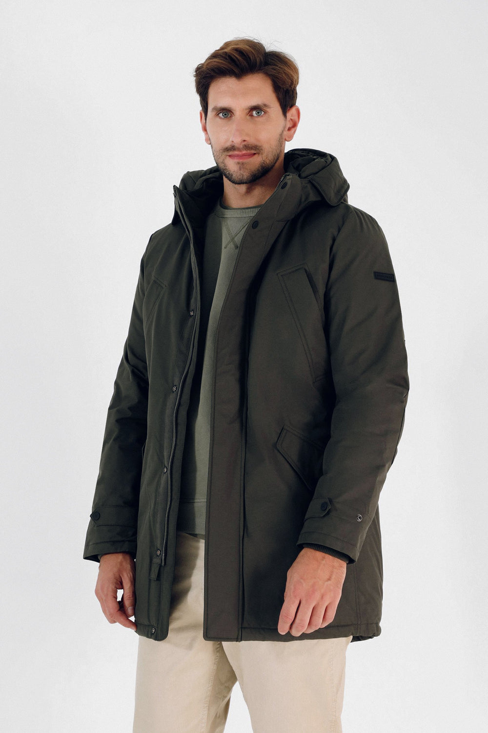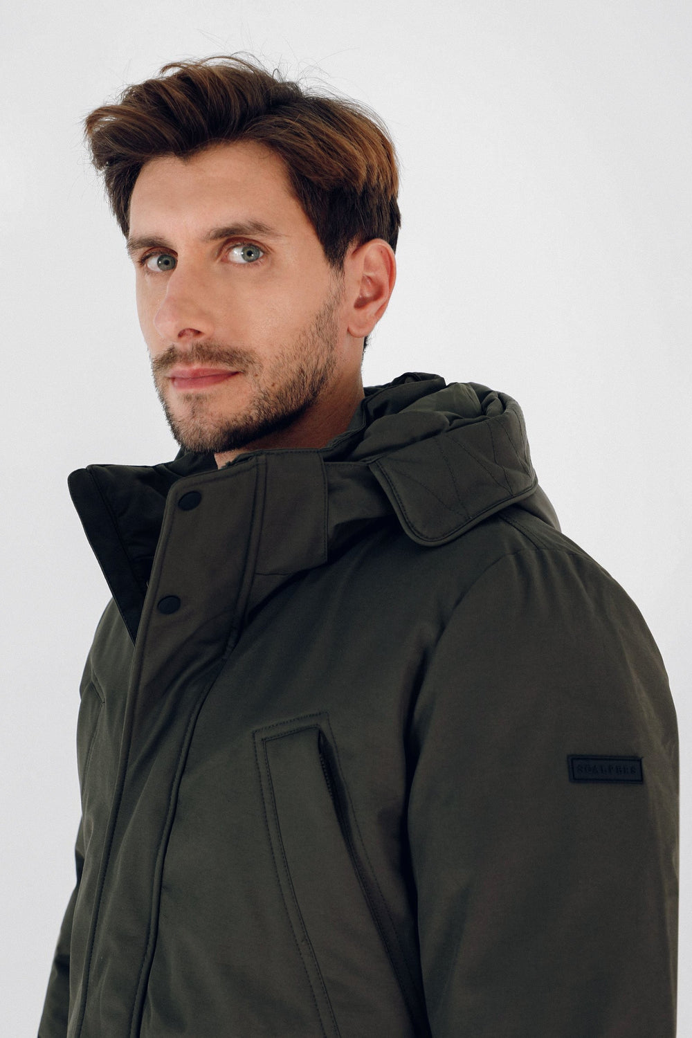 Parka matelassée confectionnée dans un mélange de coton. Coupe droite, col à capuche amovible avec fermeture éclair et scratch et fermeture à double curseur et boutons-pression. Manches longues avec poignets côtelés et boutons-pression. Poches zippées à rabats et poche intérieure.