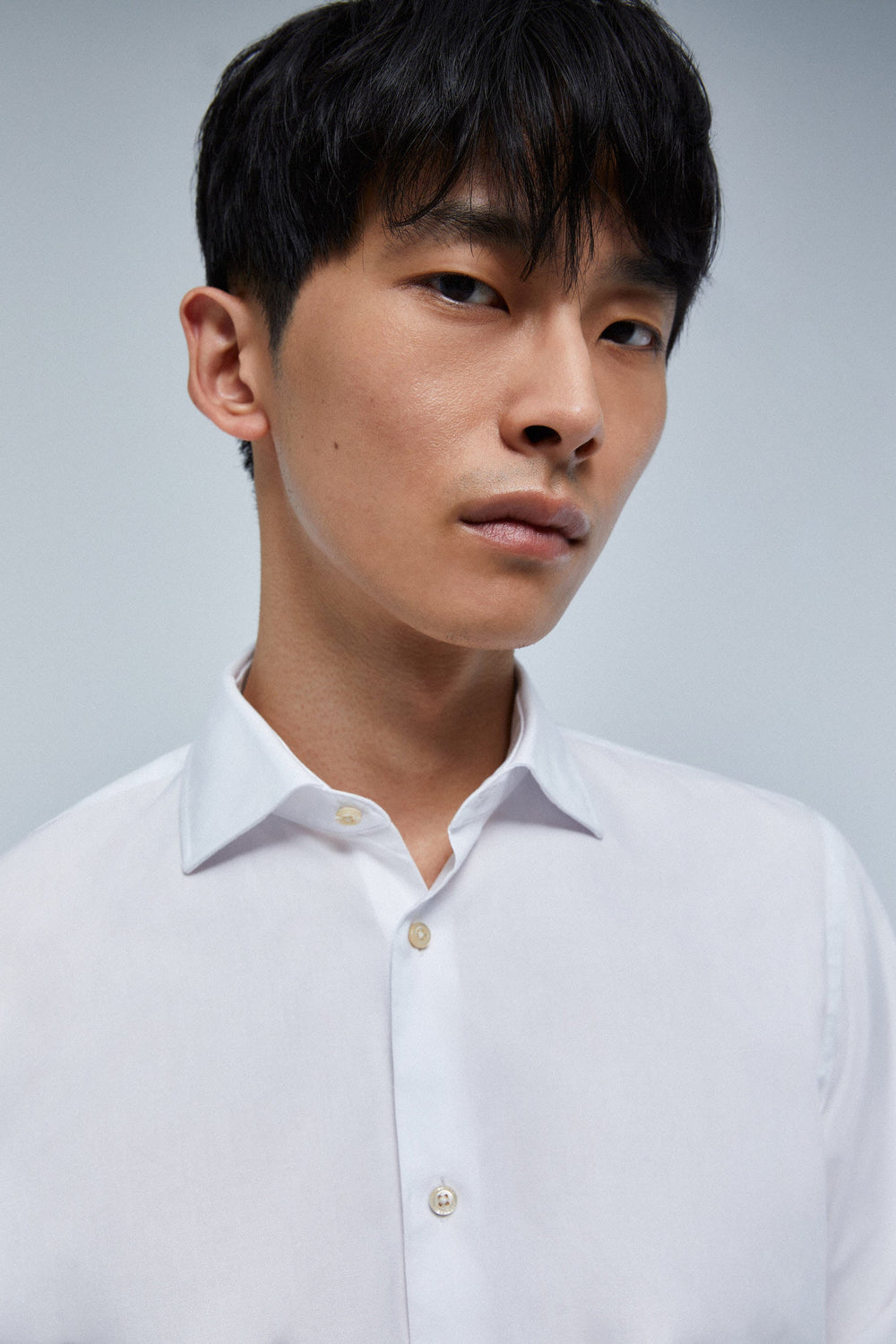Dress shirt. Made of 100% Italian cotton. Slim fit. Classic collar. Button fastening. Long sleeves with mixed cuffs