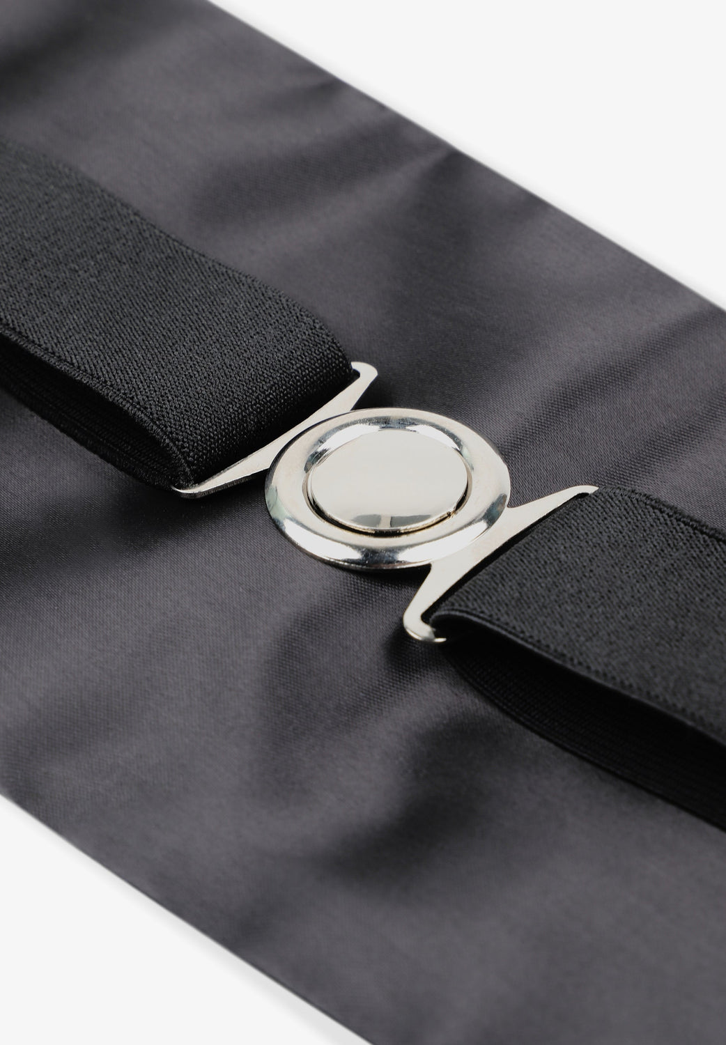 Classic satin formal cummerbund with adjustable elasticated hook fastening. Made of 100% silk. Hook and elasticated strap fastening.