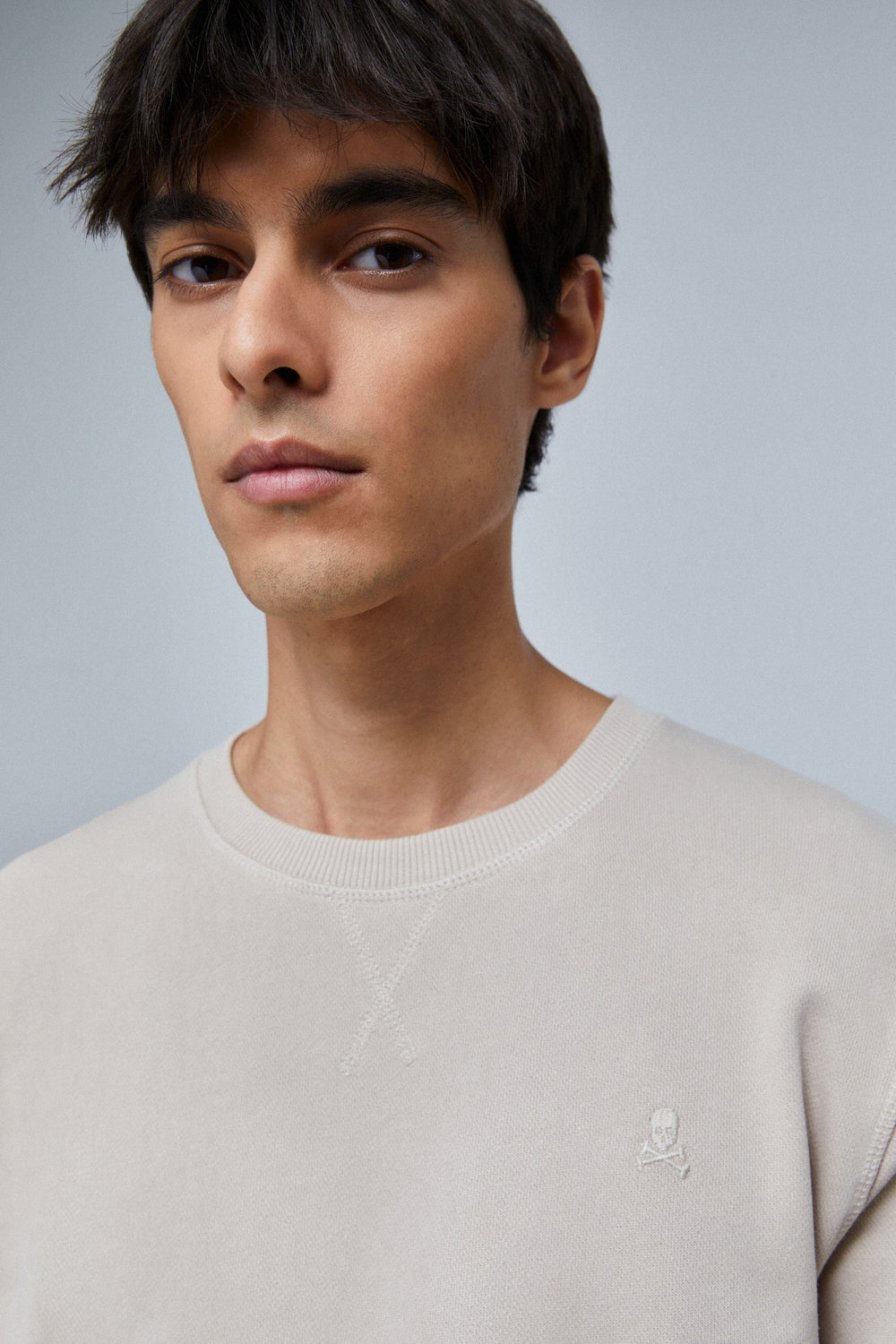 Basic sweatshirt with embroidered skull detail on the chest.