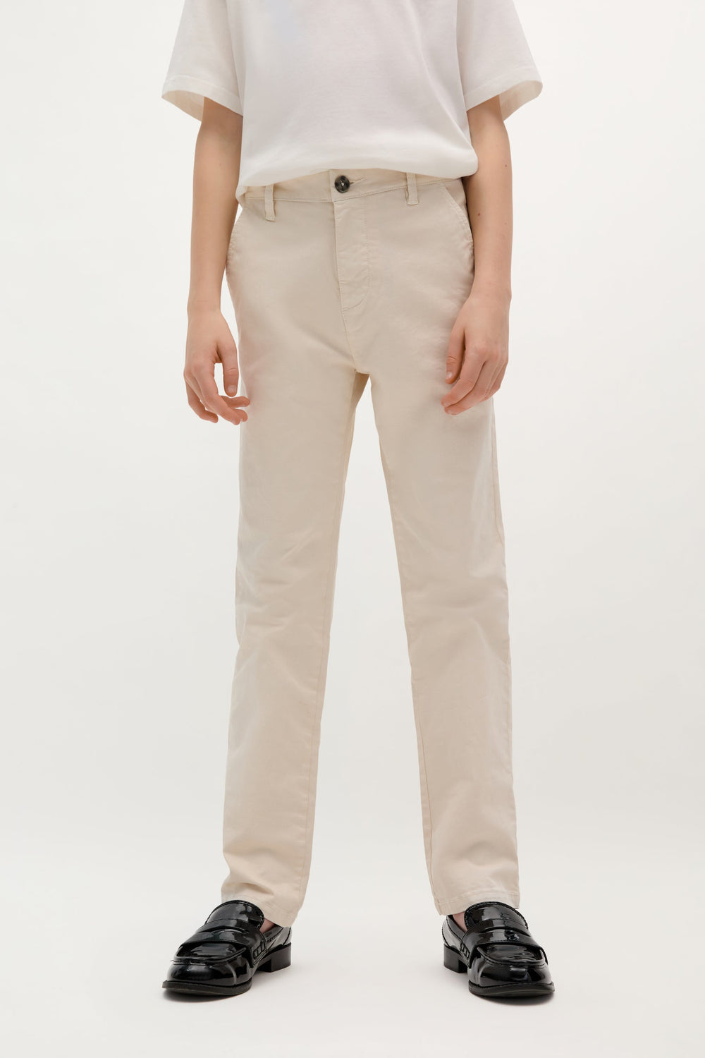 Pantalon chino casual en coton. Coupe droite, fermeture boutonnée et poches sur les côtés et à l’arrière. Logo à l’arrière.