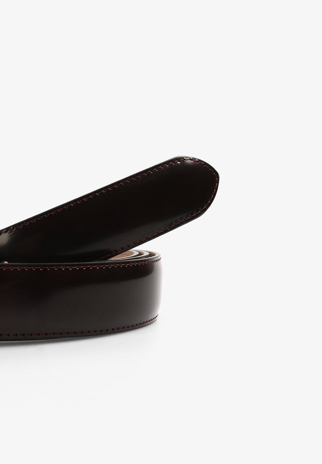Cinturón confeccionado en 100% piel con acabado de brillo. Cierre con hebilla metálica.