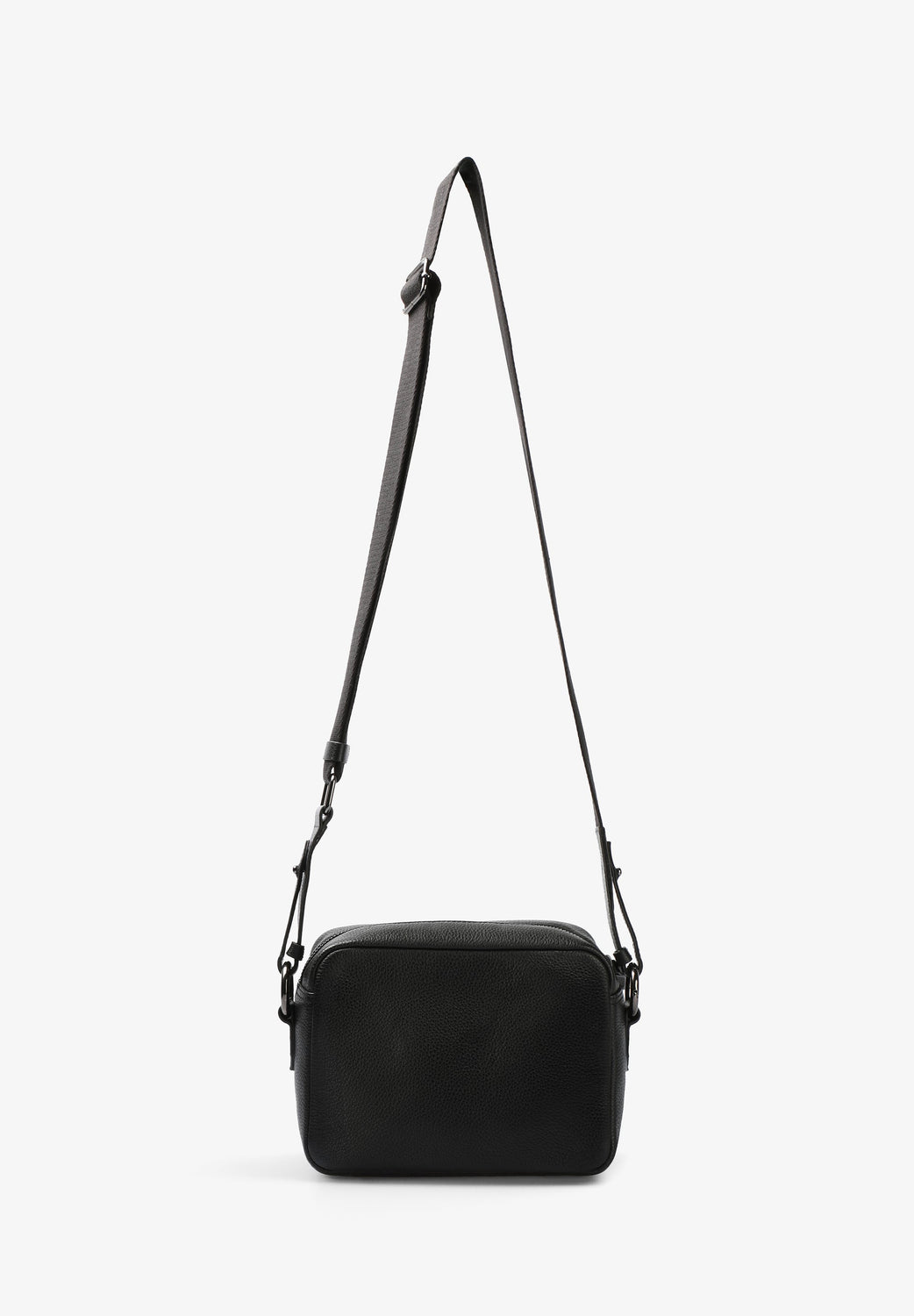 Bolso bandolera confeccionado en 100% piel. Cierre con cremallera, asa larga ajustable y calaveras metálicas all over.
