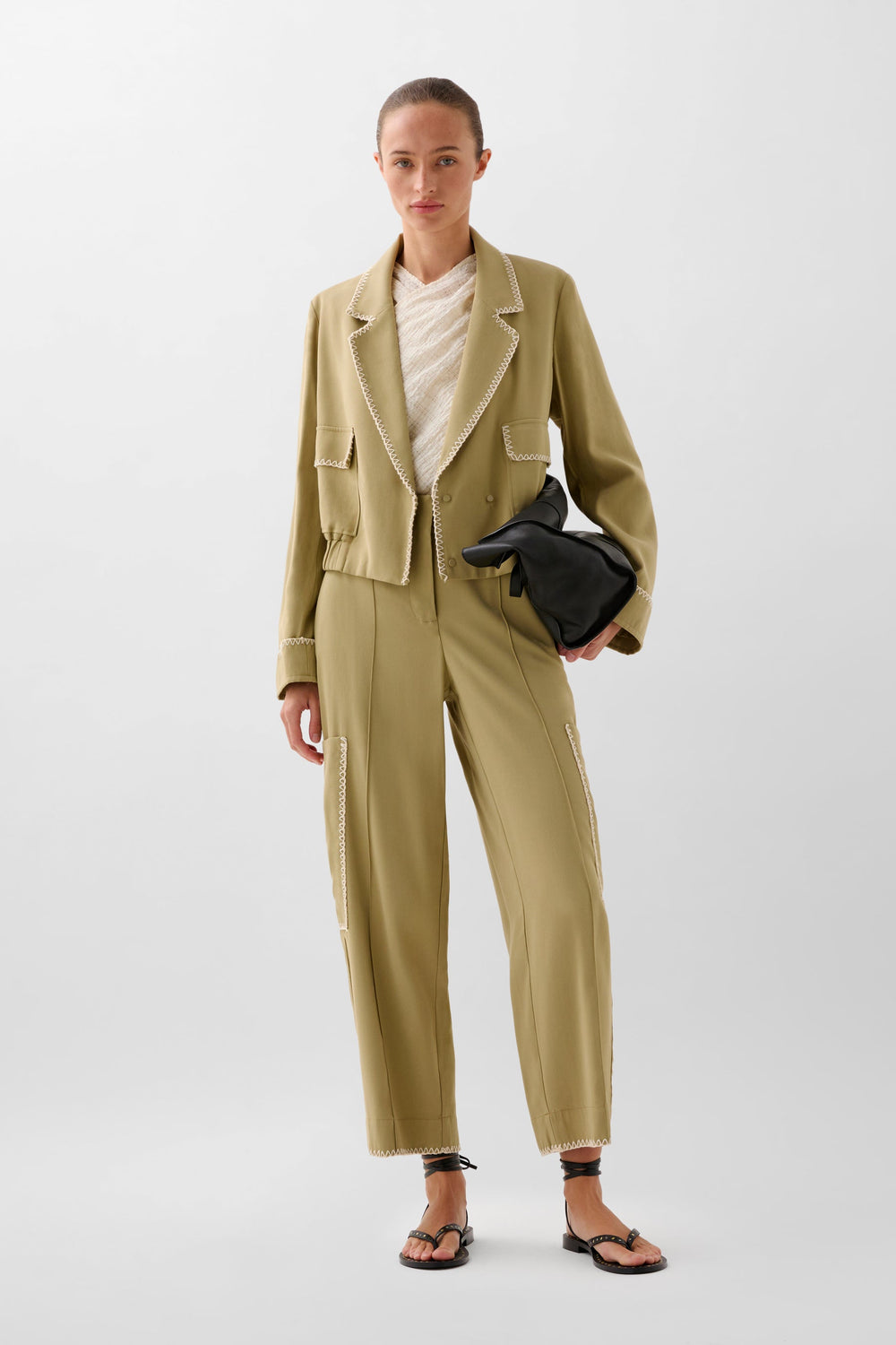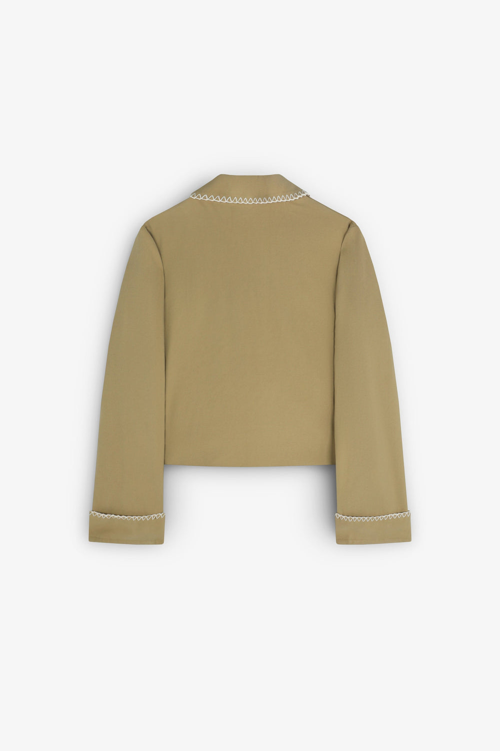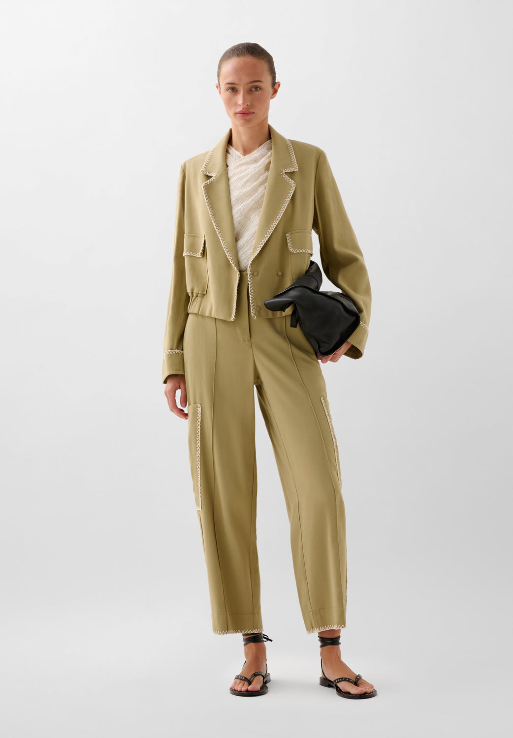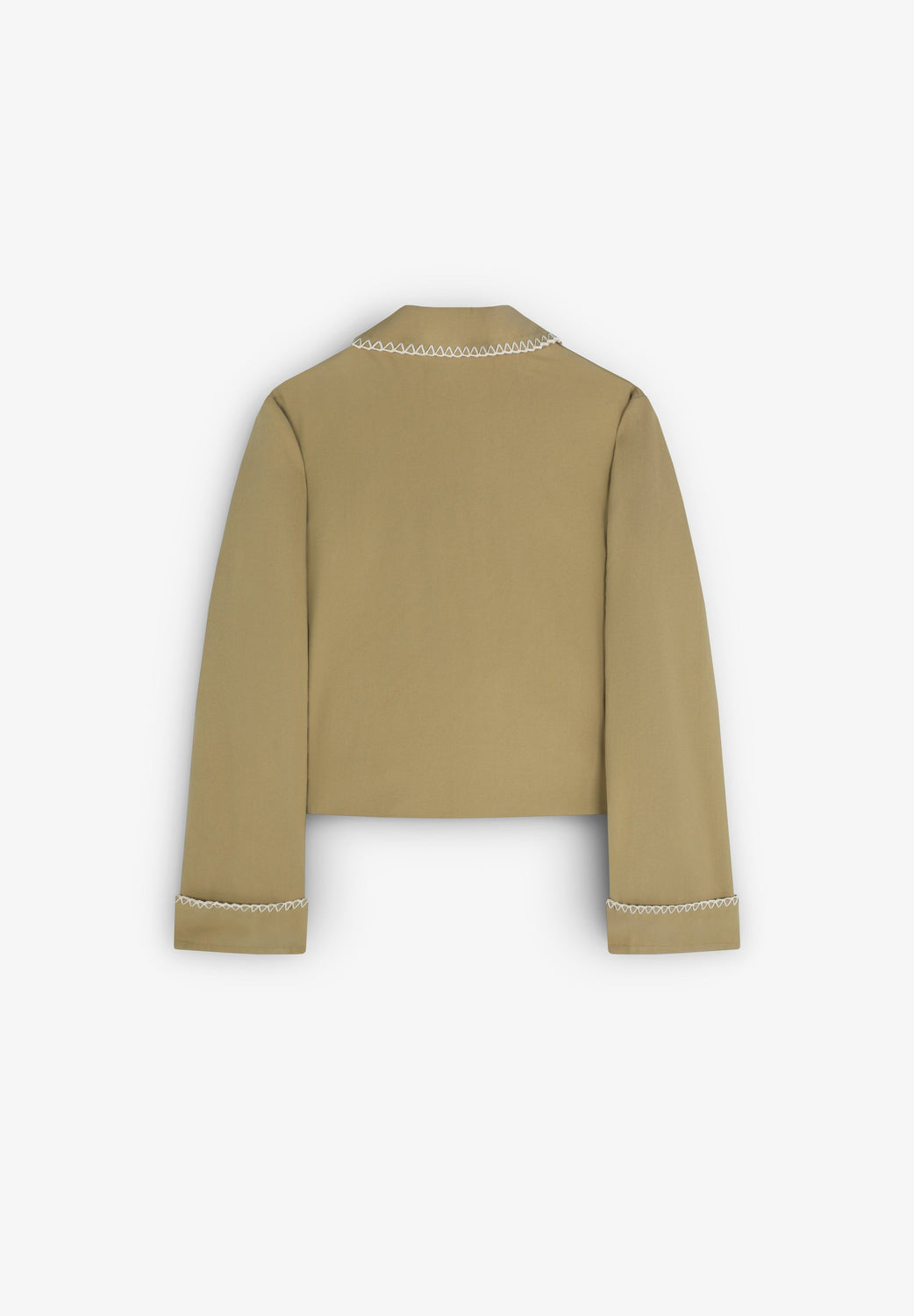 Blazer avec coutures contrastantes. Confectionné dans un mélange de coton toucher velours. Coupe droite. Col à revers. Boutonnage croisé. Manches longues. Poches à rabat.