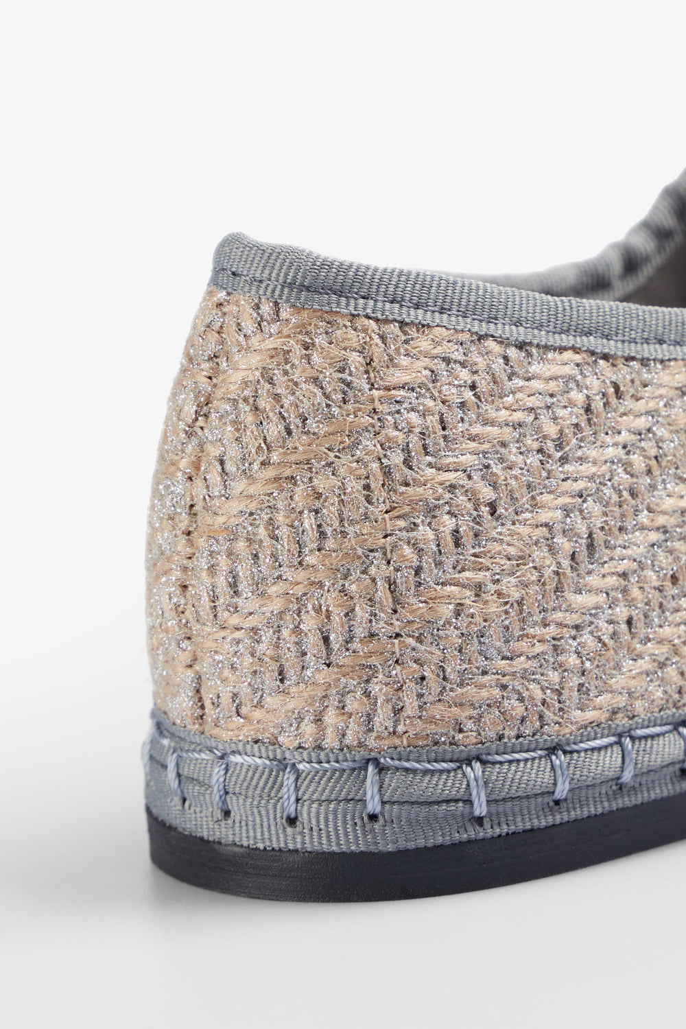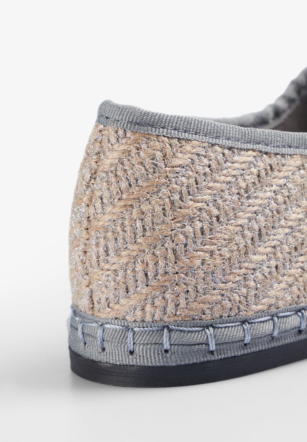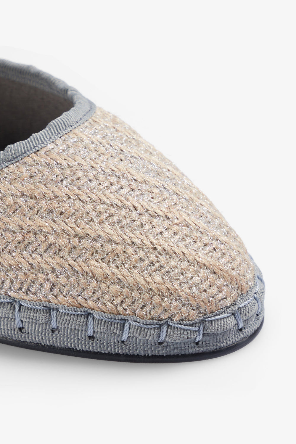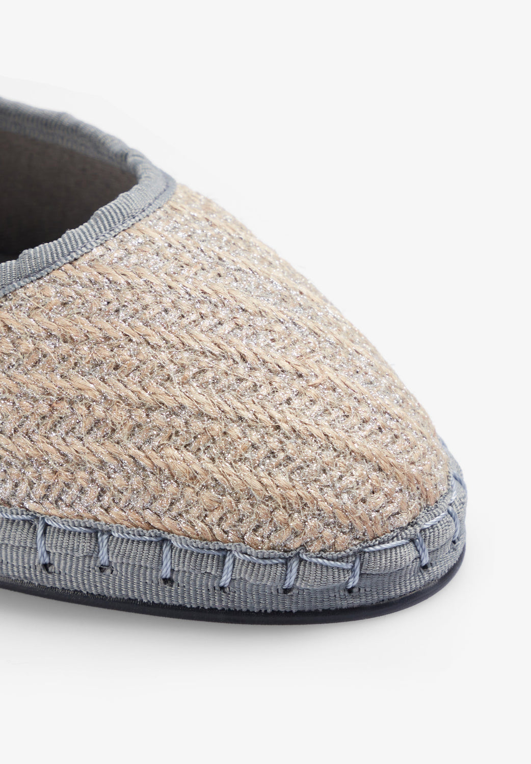 Slippers en tissu rustique à boucle métallique, avec semelle et liseré contrastants.