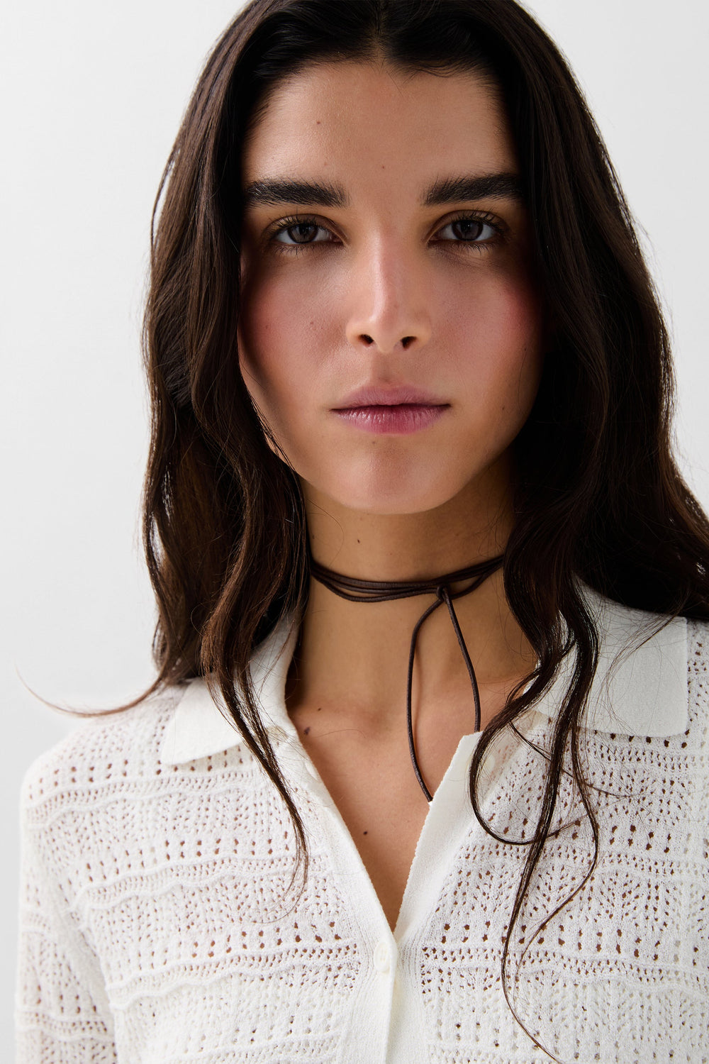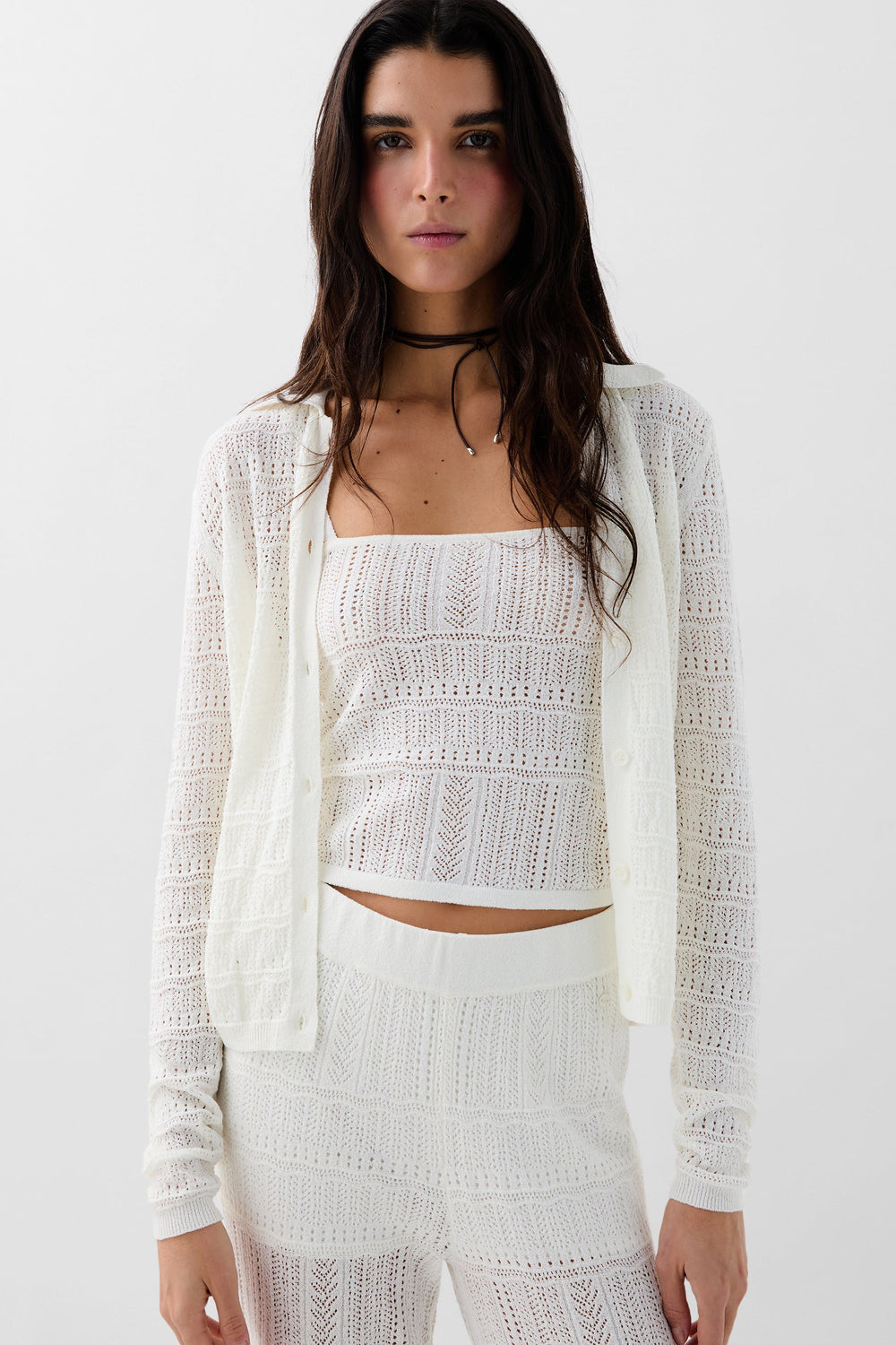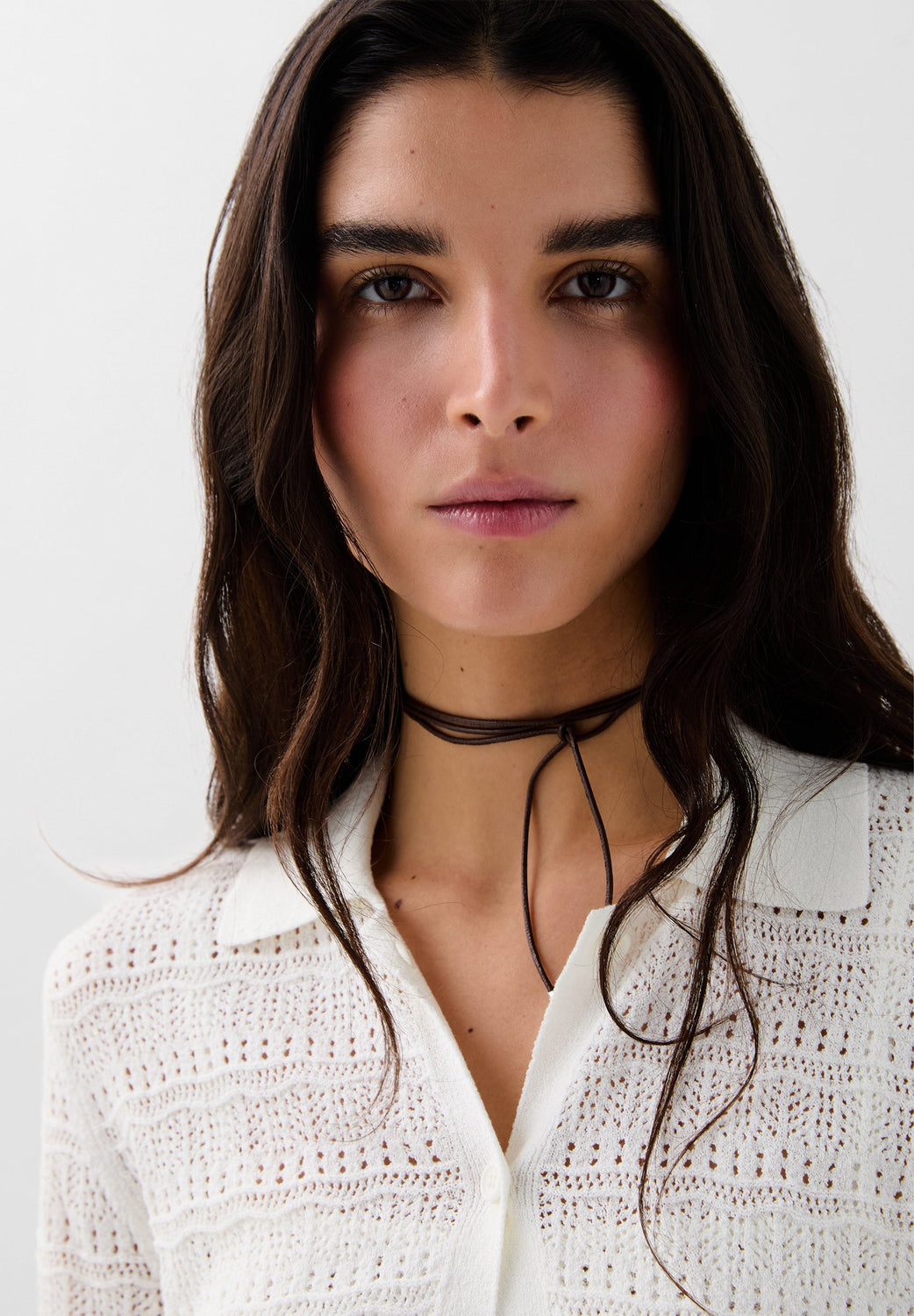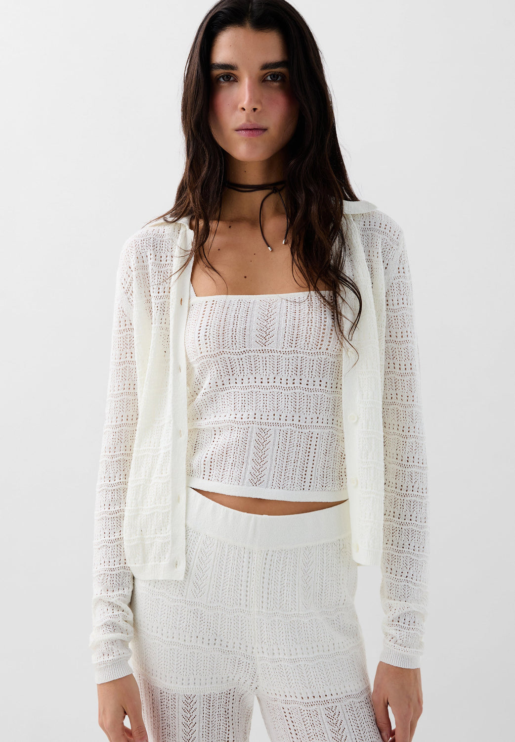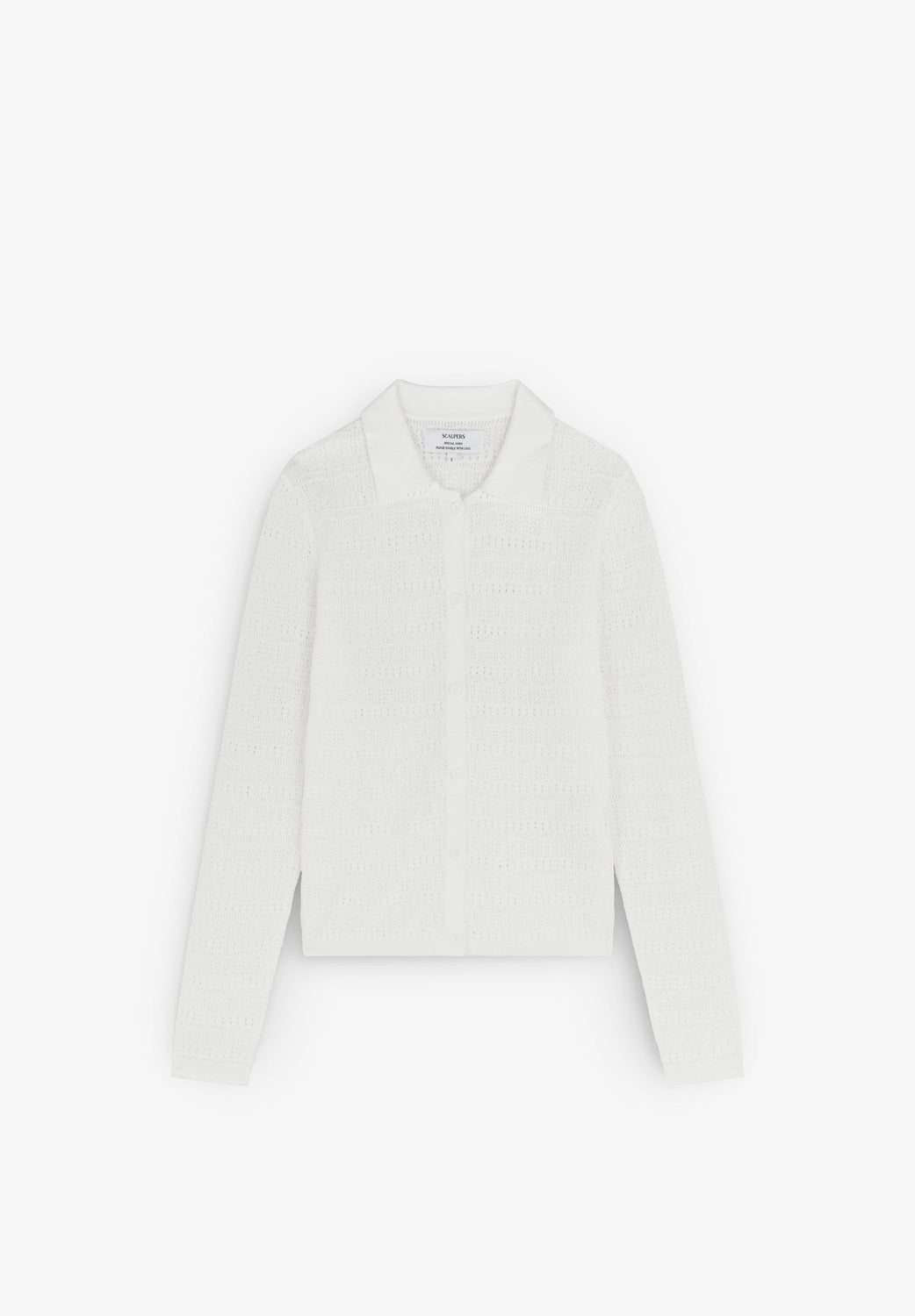 Cardigan en lin. Boutonné sur le devant. Col chemise. Manches longues.