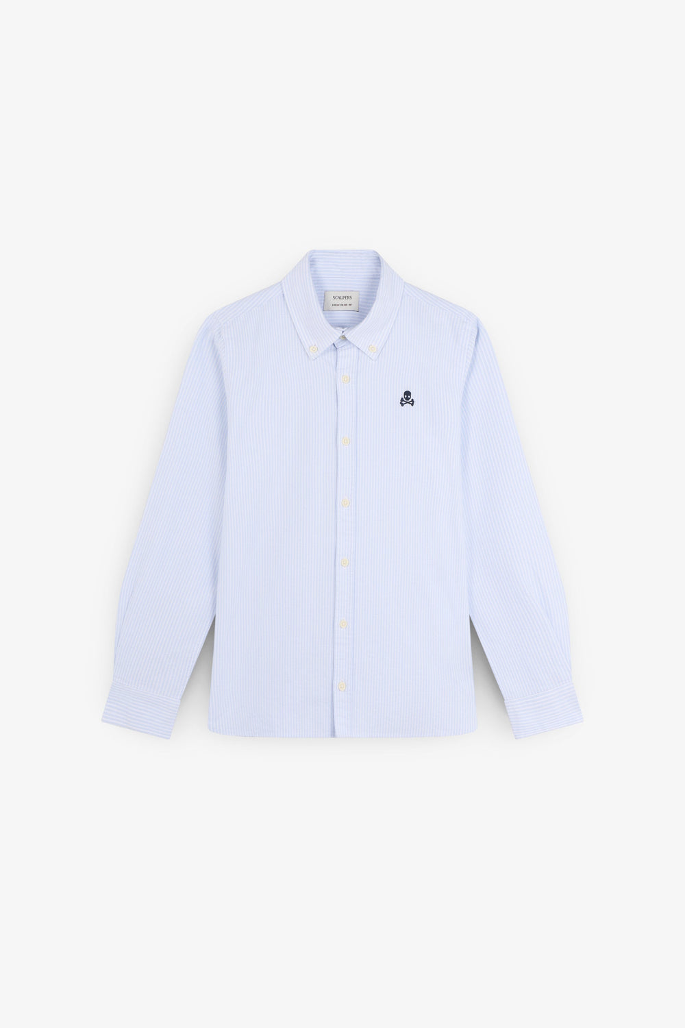 Chemise Oxford 100 % coton BCI. Coupe droite. Col classique et boutons. Manches longues à poignets boutonnés. Skull contrastant brodé sur la poitrine.