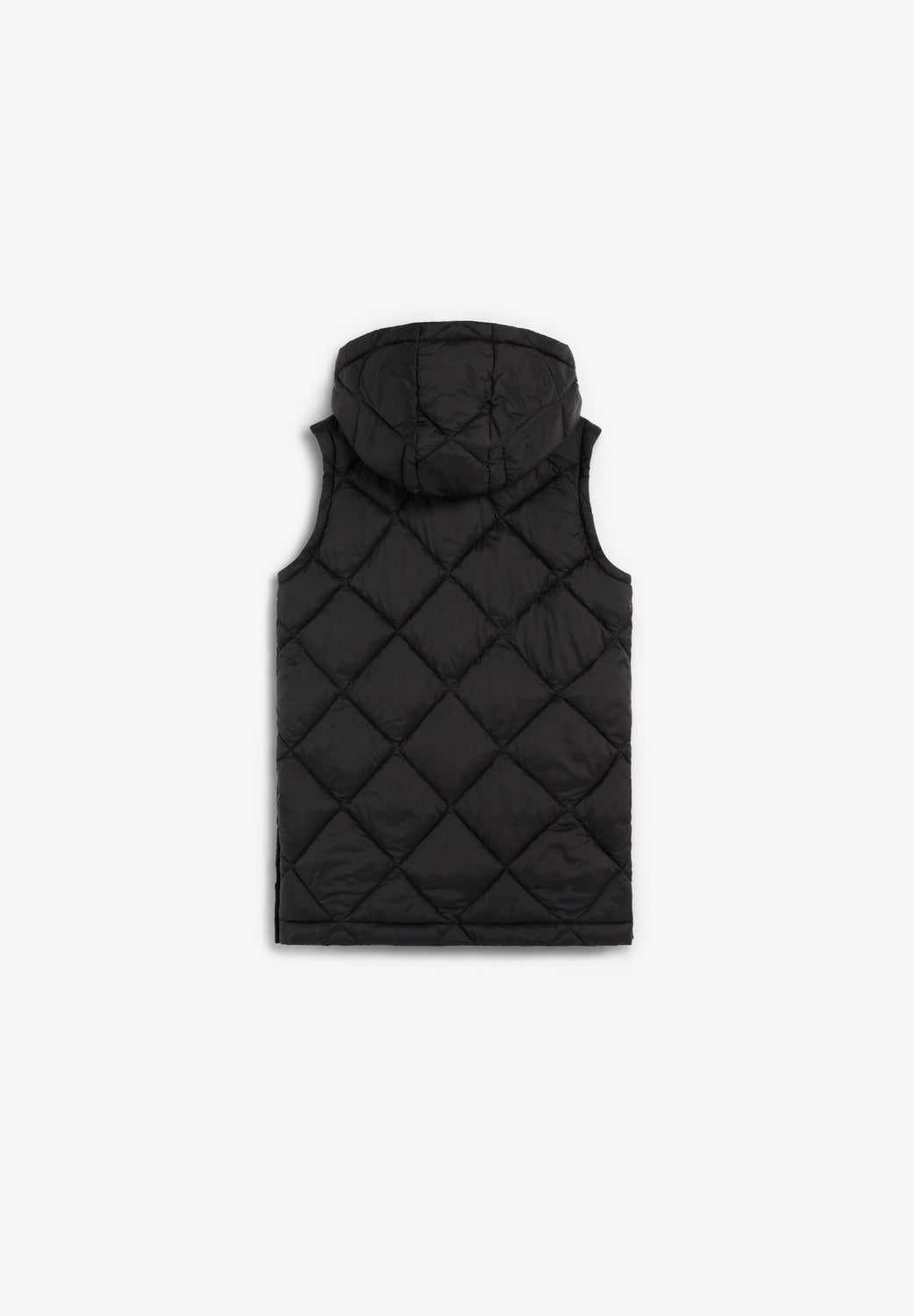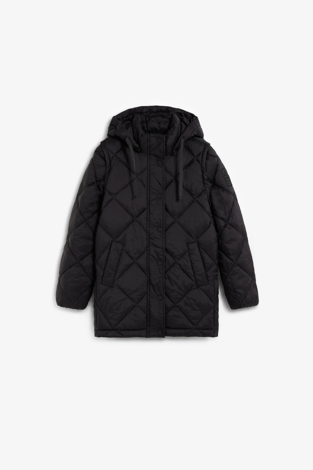 Doudoune. Capuche et manches amovibles. Fermeture éclair sur le devant, dissimulée sous une patte à boutons-pression. Poches sur les côtés. Intérieur en tissu recyclé. Logo dans le dos.