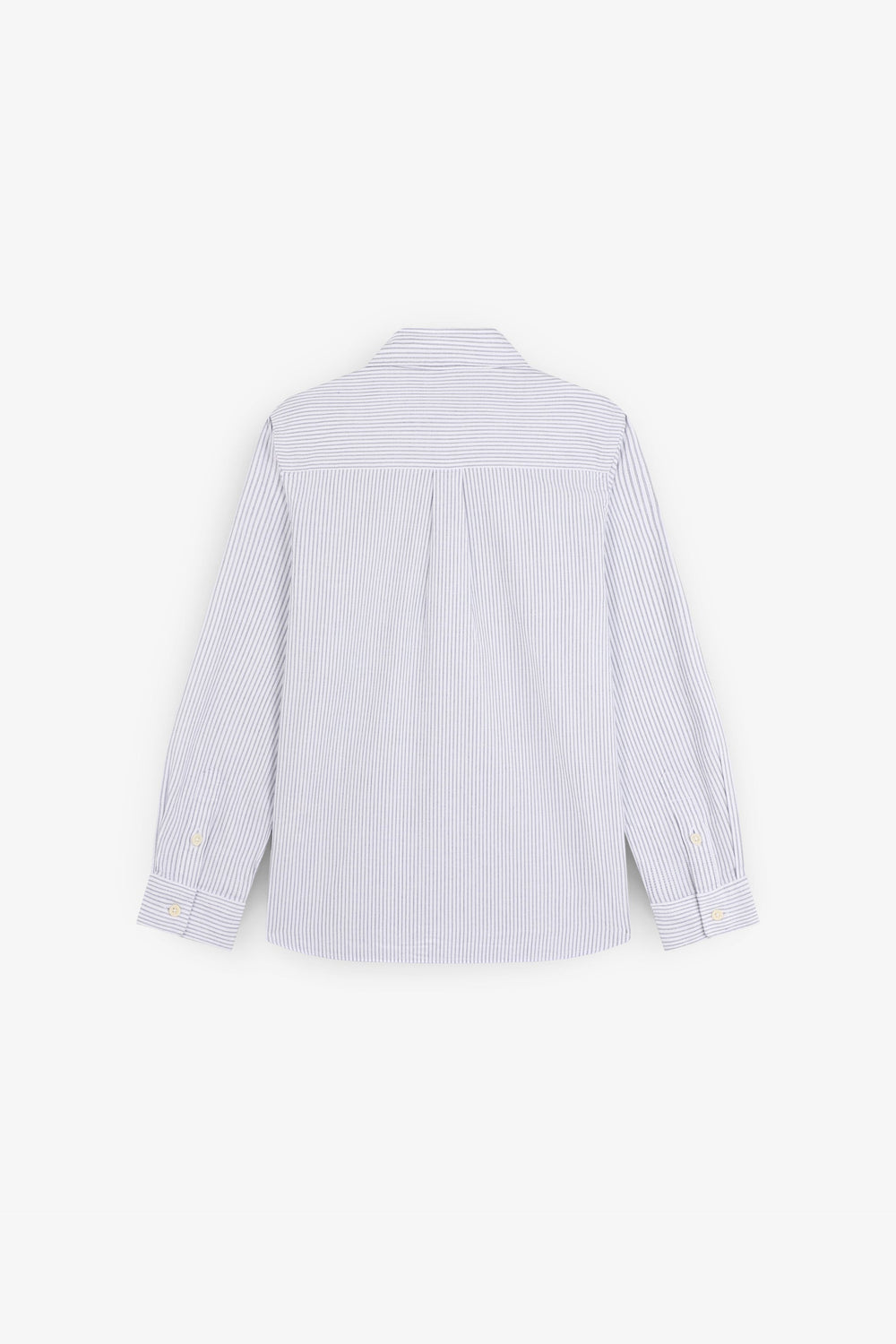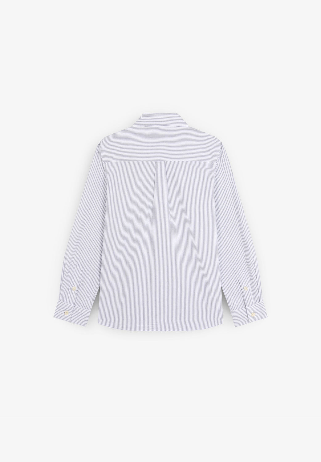 Chemise polo à rayures 100 % coton BCI. Col italien, boutons, coupe droite, skull contrastant sur la poitrine. Poignets boutonnés.